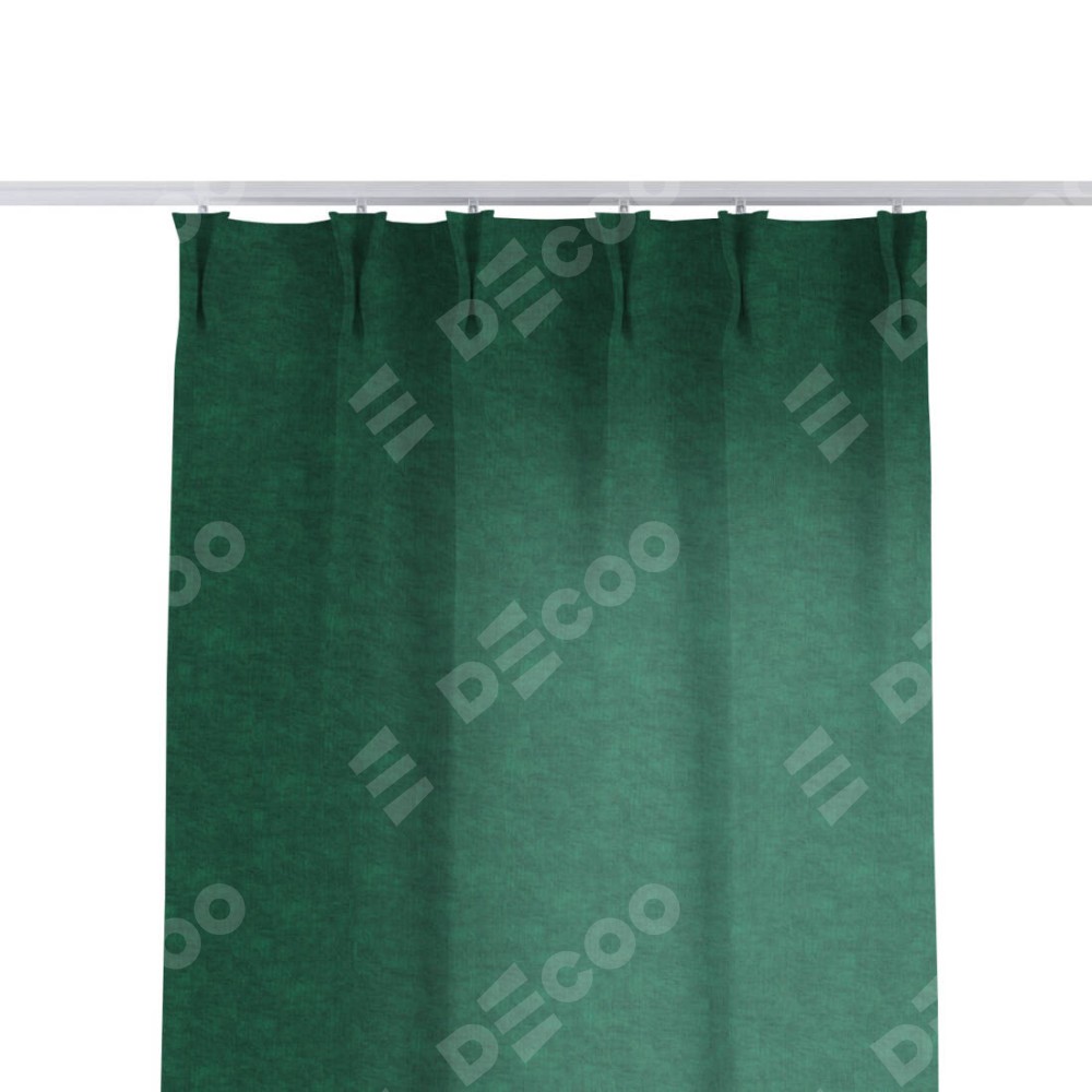Комплект прямых штор, от производителя «Cortin», пошиты из ткани канвас тёмно-зелёный, артикул ткани v-469. С изнаночной стороны в верхней части штор пристрачивается шторная лента с декоративными складками «Кустик». Для создания элегантных складок прямые шторы шьются по стандарту с коэффициентом 1:2 (на 100 см. ширины проёма 200 см. ширины ткани).