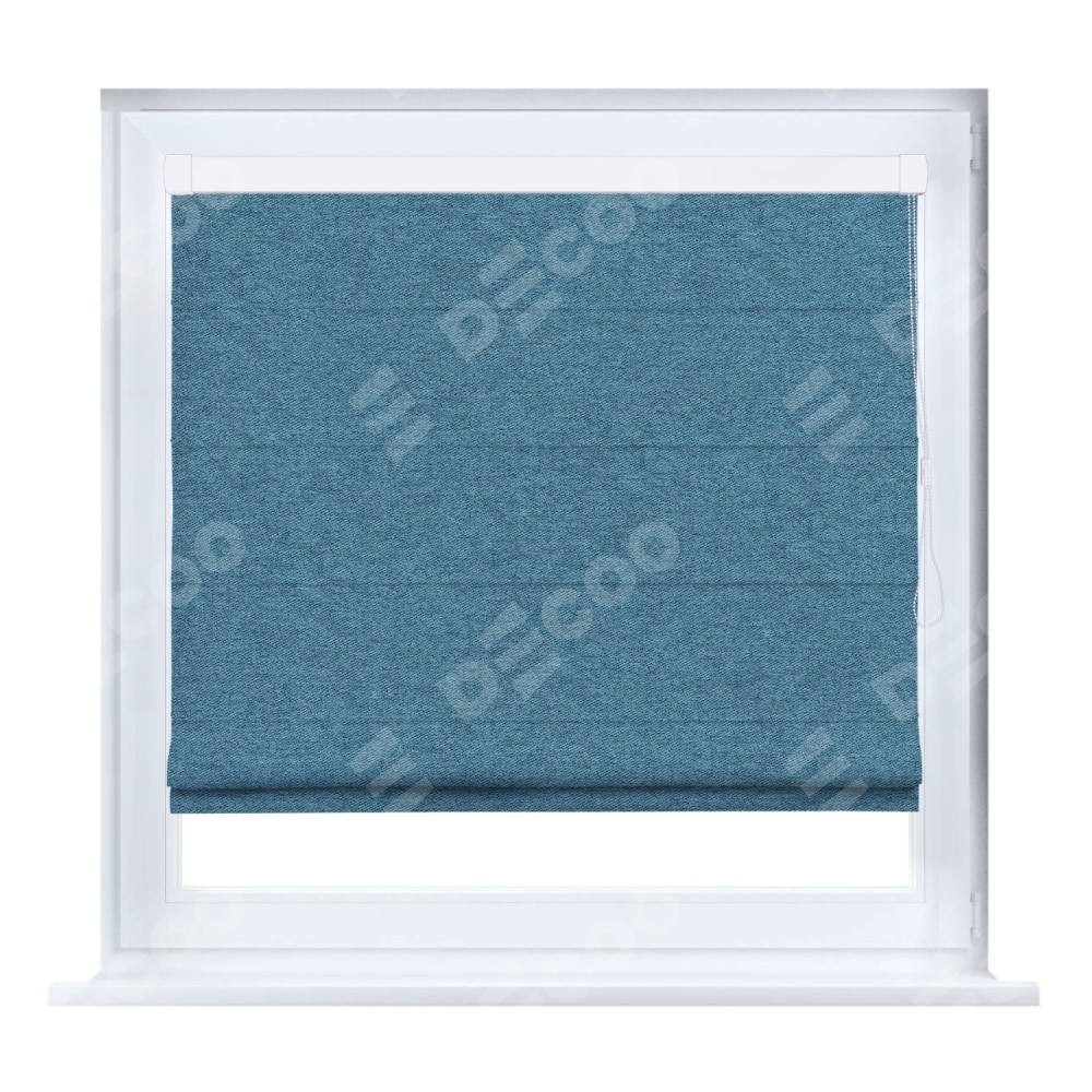 Римская штора производителя «Cortin», устанавливается на створку окна, пошита из ткани твид блэкаут светло-синий, артикул 90935. Штора шьётся по индивидуальным размерам, для данного типа римской шторы возможная ширина от 35 до 150 см., высота до 250 см.