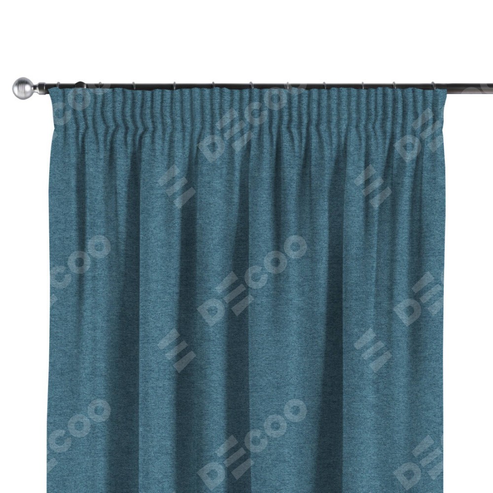 Комплект прямых штор, от производителя «Cortin», пошиты из ткани твид блэкаут светло-синий, артикул ткани 90935. С изнаночной стороны в верхней части штор пристрачивается шторная лента с декоративными складками «Карандаш». Для создания элегантных складок прямые шторы шьются по стандарту с коэффициентом 1:2 (на 100 см. ширины проёма 200 см. ширины ткани).
