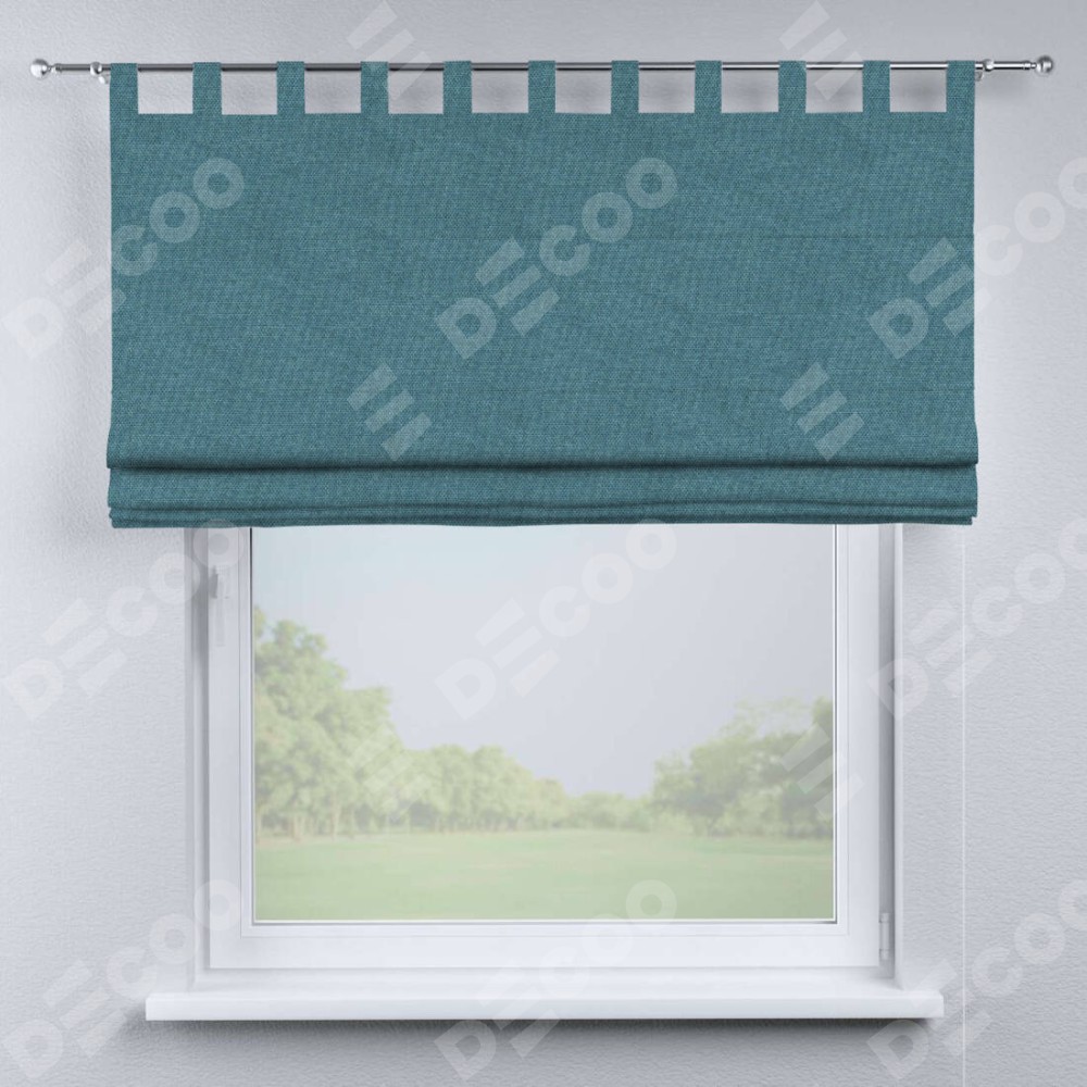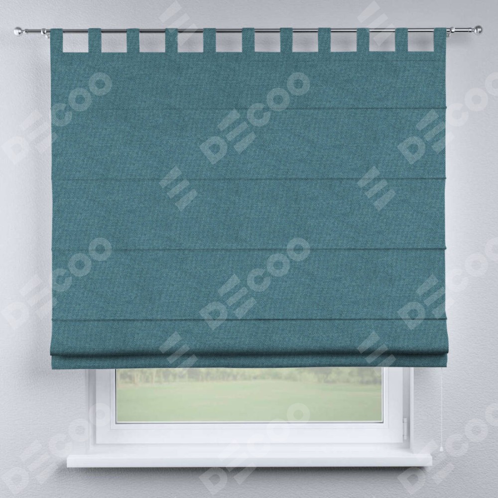 Римская штора производителя «Cortin», используется для проёма, пошита из ткани лён димаут светло-синий, артикул ткани 91007. Данная модель пошита на петлях, комплектуется на выбор круглым карнизом и подходит для монтажа на стену. Римская штора на петлях имеет простую систему регулировки высоты, отличительным преимуществом данной модели является простой способ монтажа. Достаточно повесить ее на трубу и штора готова!