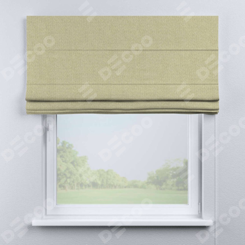 Римская штора производителя «Cortin», используется для проёма, пошита из ткани лён димаут шампань, артикул ткани 90994. Имеет универсальный механизм и подходит для монтажа: на потолок, на стену и в нишу.