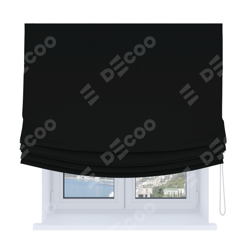 Римская штора Soft производителя «Cortin», используется для проёма, пошита из ткани блэкаут однотонный черный, артикул ткани 91571−2. Имеет универсальный механизм и подходит для монтажа: на потолок, на стену и в нишу. В отличие от стандартных римских штор, римская штора Soft не имеет горизонтальных вставок и нижнего отвеса. Это позволяет ткани произвольно драпироваться в свободные мягкие складки.