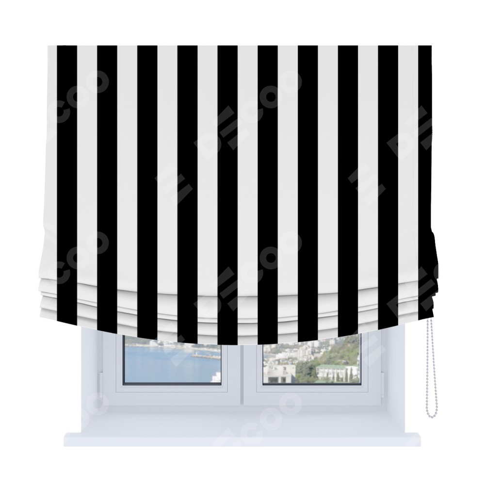 Римская штора Soft производителя «Cortin», используется для проёма, пошита из ткани блэкаут с нанесением сублимационной печати «Черное и белое». Имеет универсальный механизм и подходит для монтажа: на потолок, на стену и в нишу. В отличие от стандартных римских штор, римская штора Soft не имеет горизонтальных вставок и нижнего отвеса. Это позволяет ткани произвольно драпироваться в свободные мягкие складки.