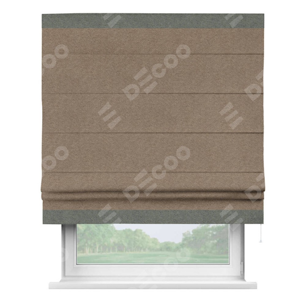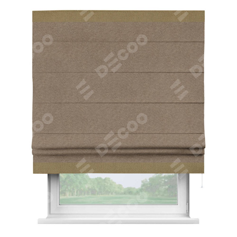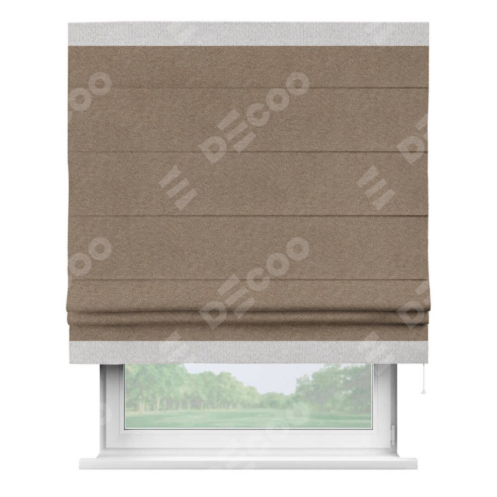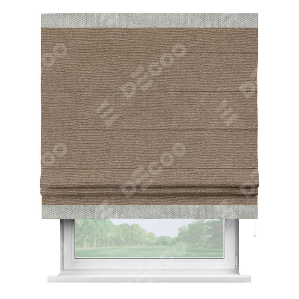 Римская штора «Кортин» для проема, лён димаут коричневый с кантом Горизонт