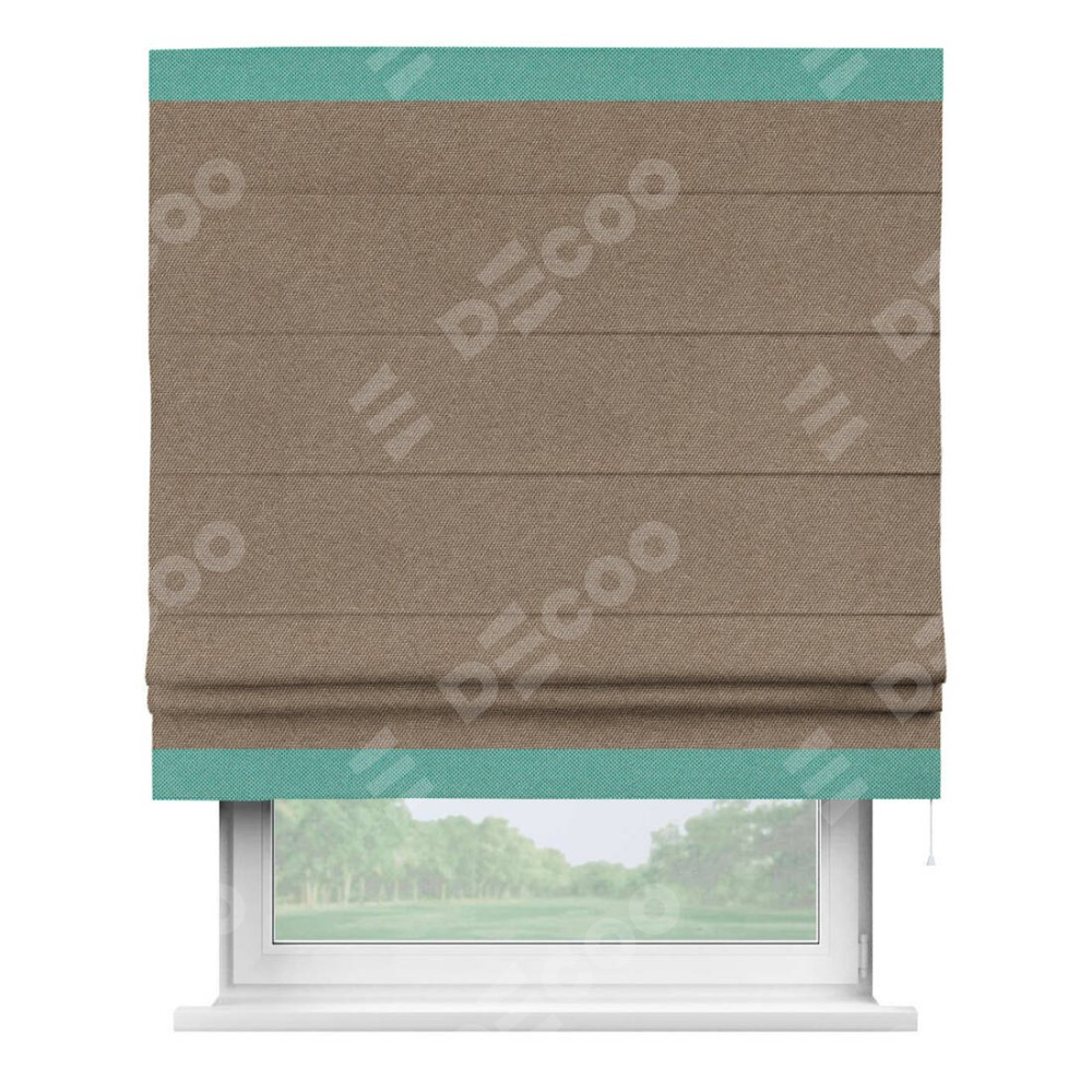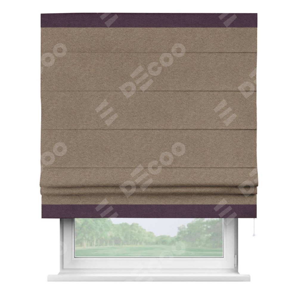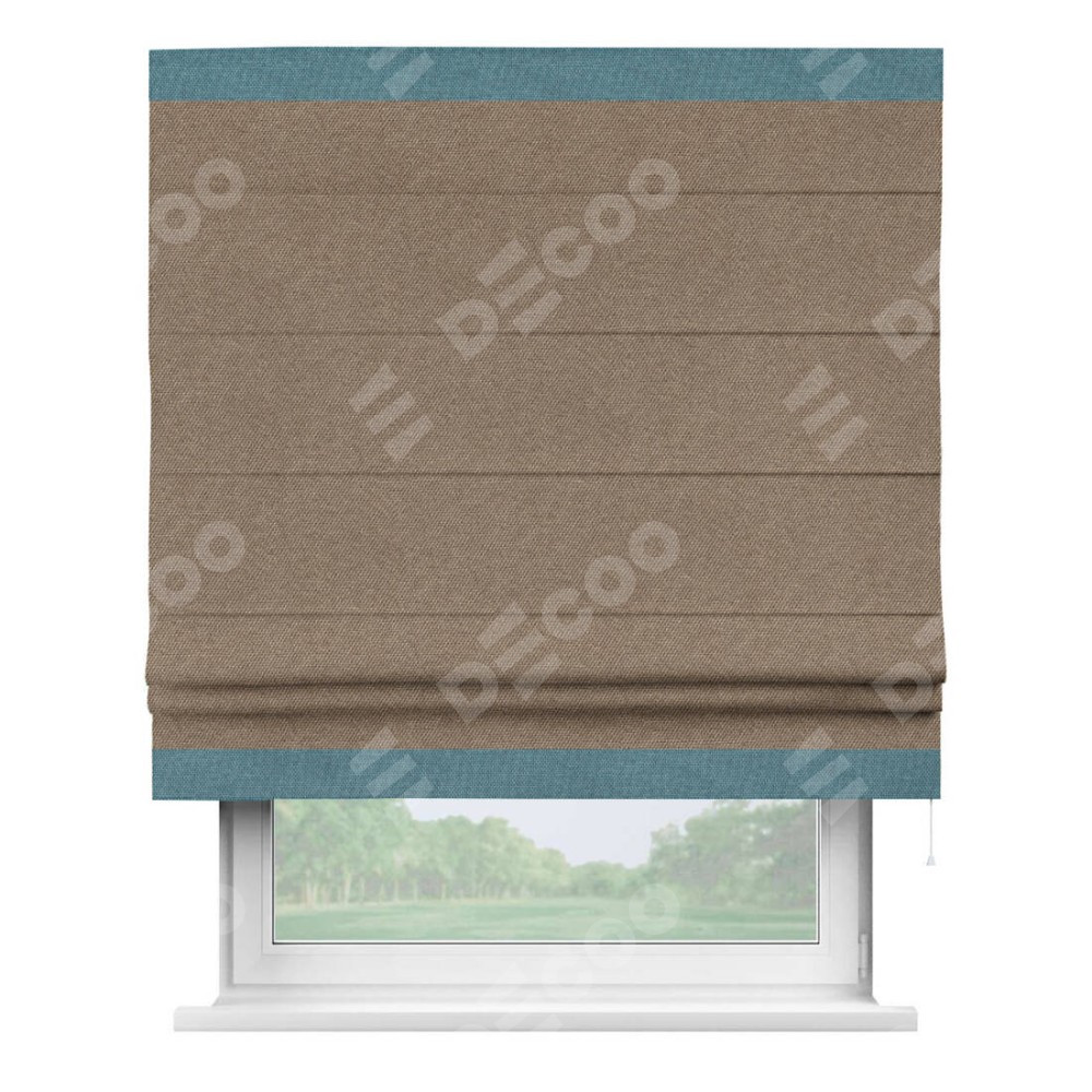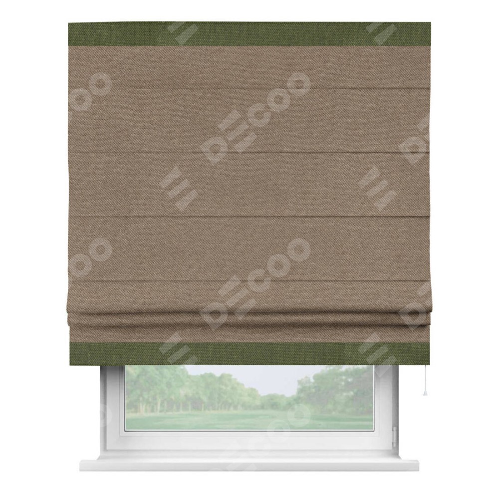 Римская штора «Кортин» для проема, лён димаут коричневый с кантом Горизонт