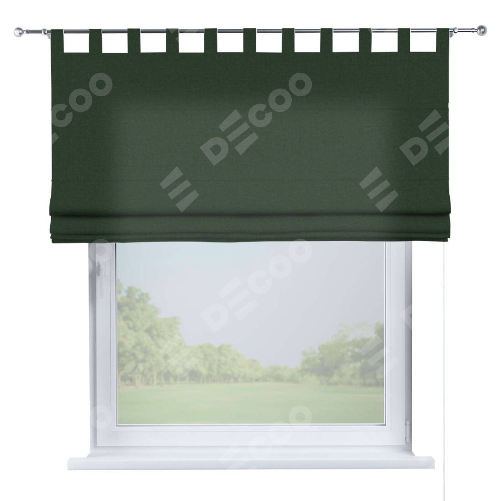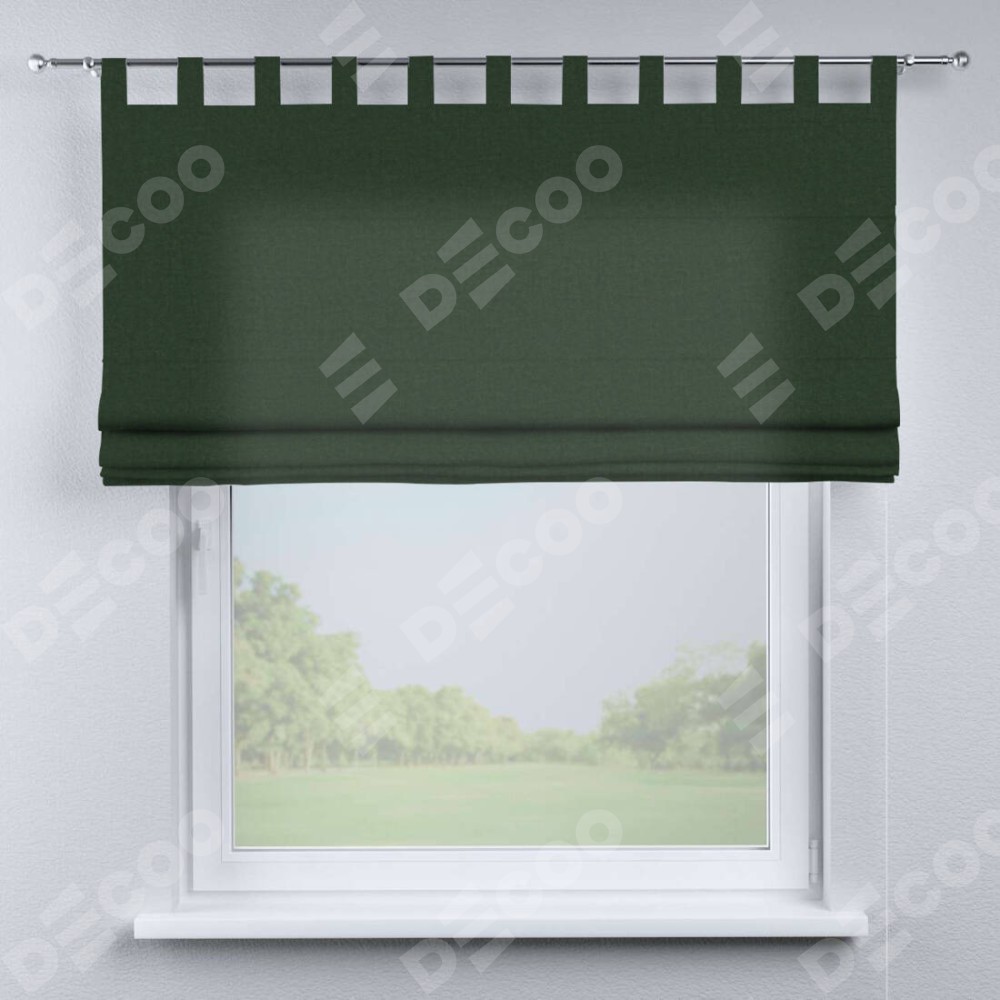 Римская штора производителя «Cortin», используется для проёма, пошита из ткани канвас глубокий зелёный, артикул ткани v-588. Данная модель пошита на петлях, комплектуется на выбор круглым карнизом и подходит для монтажа на стену. Римская штора на петлях имеет простую систему регулировки высоты, отличительным преимуществом данной модели является простой способ монтажа. Достаточно повесить ее на трубу и штора готова!