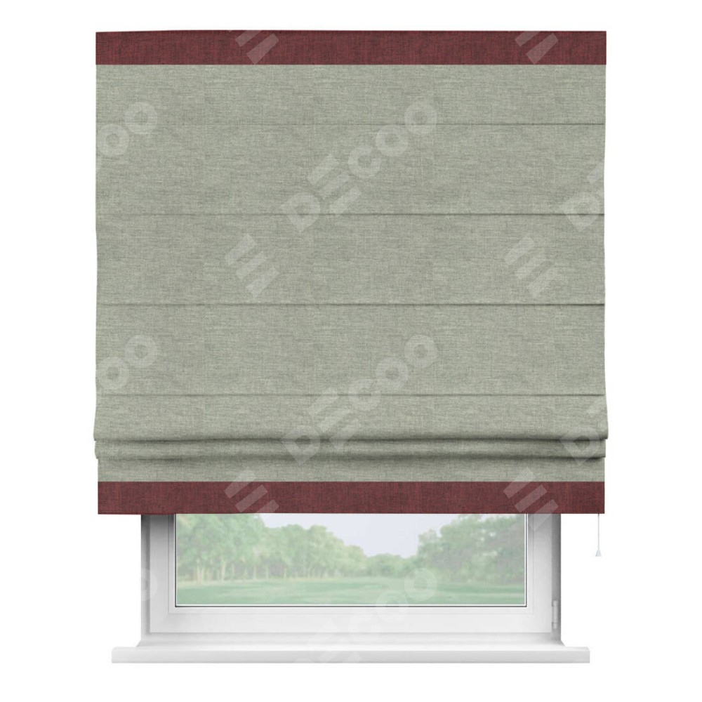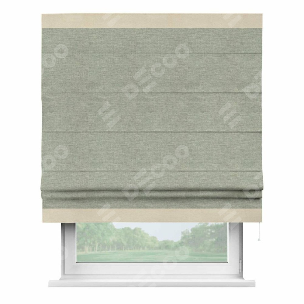 Римская штора производителя «Cortin», используется для проёма, пошита из ткани лён кашемир серый new, артикул 21618. Отделка шторы кантом «Горизонт», ткань для канта используется из льна разной расцветки на выбор. Имеет универсальный механизм и подходит для монтажа: на потолок, на стену и в нишу.