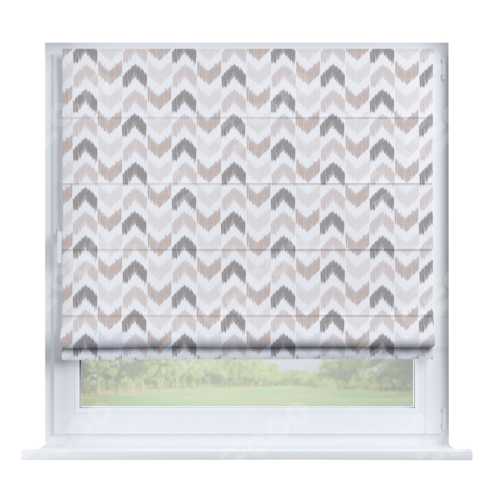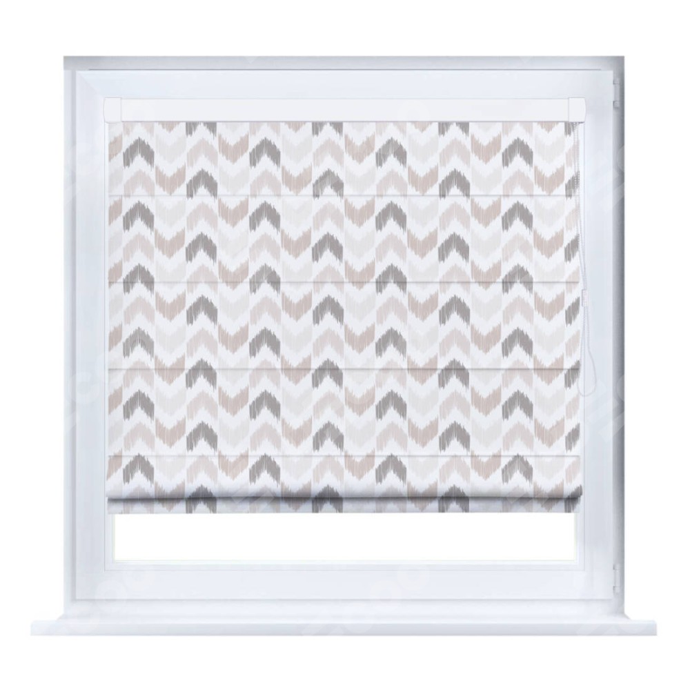 Римская штора производителя «Cortin», устанавливается на створку окна, пошита из ткани блэкаут с нанесением сублимационной печати «Икат стрелки». Штора шьётся по индивидуальным размерам, для данного типа римской шторы возможная ширина от 35 до 150 см., высота до 250 см.