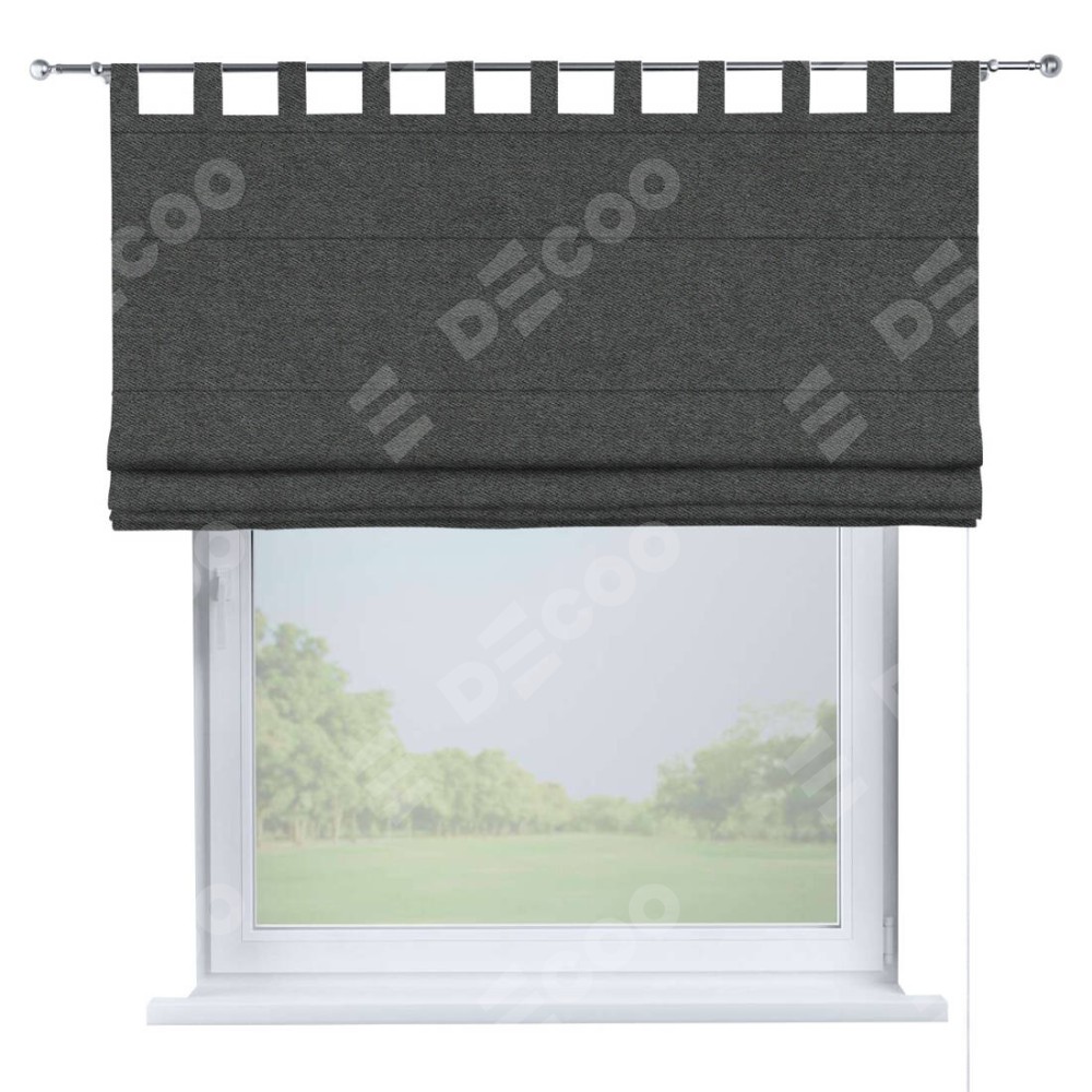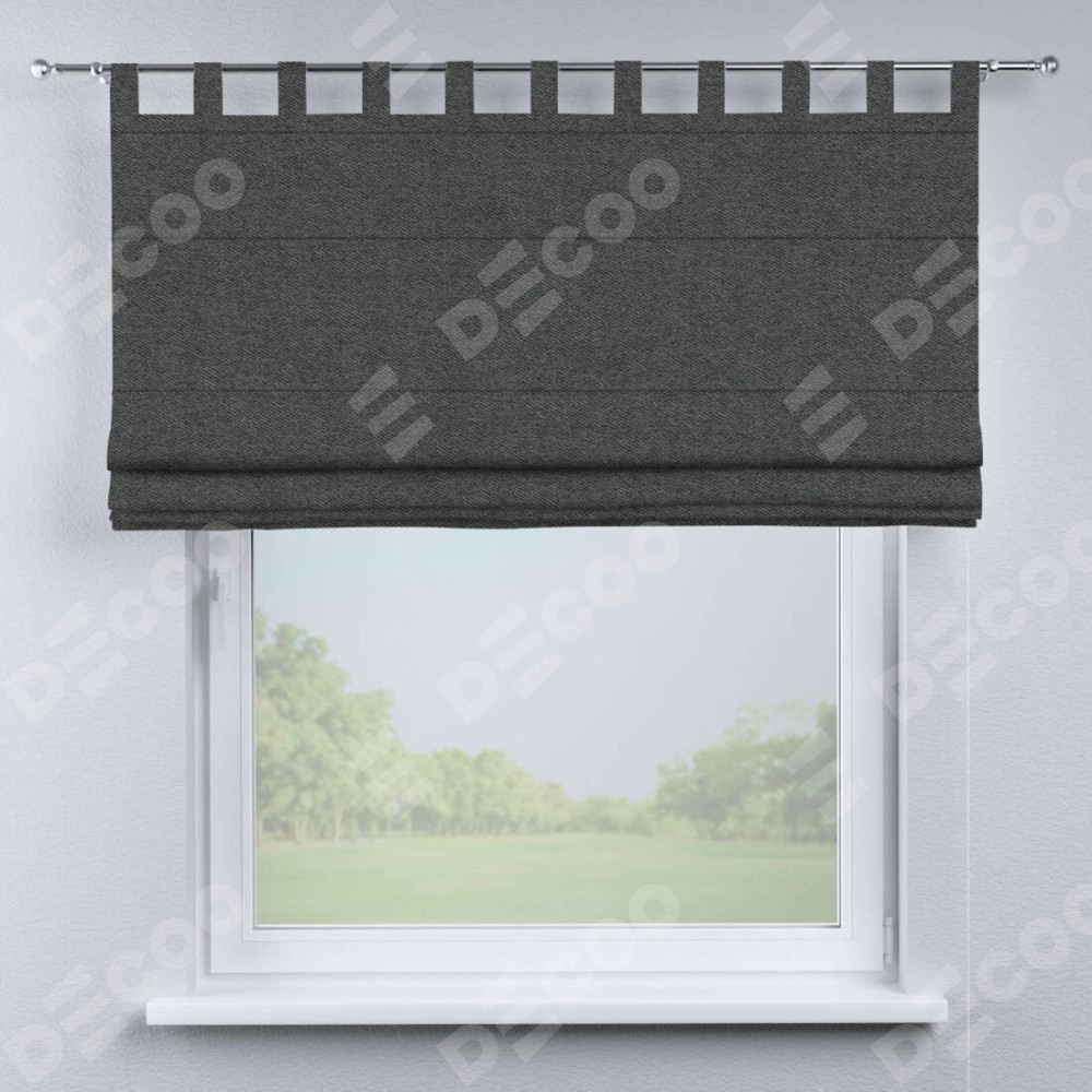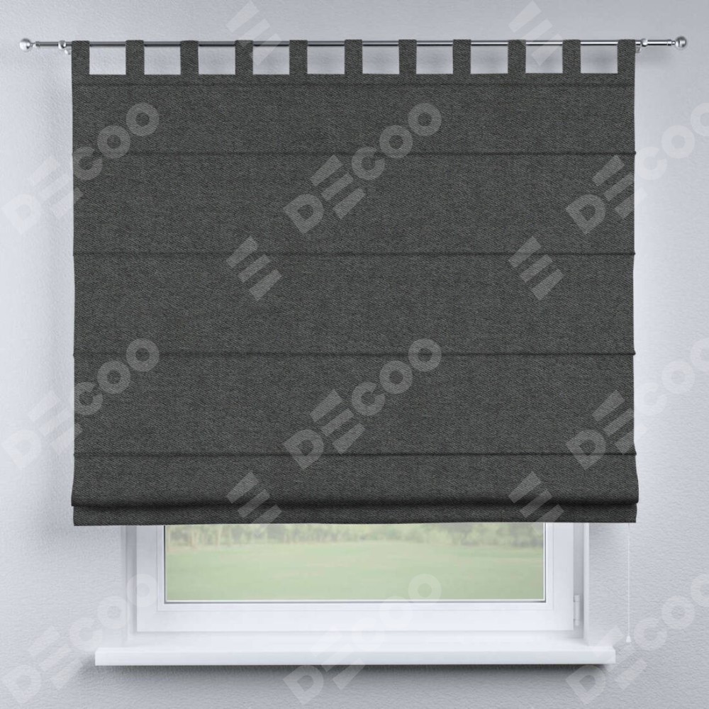 Римская штора «Кортин», твид блэкаут тёмно-серый, на петлях