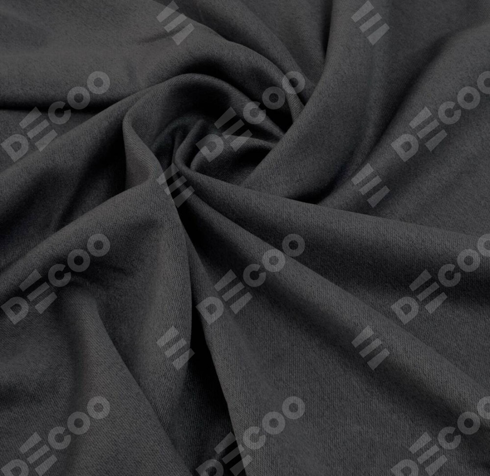 Комплект прямых штор, от производителя «Cortin», пошиты из ткани твид блэкаут тёмно-серый, артикул ткани 90938. С изнаночной стороны в верхней части штор пристрачивается шторная лента с декоративными складками «Волна». Для создания элегантных складок прямые шторы шьются по стандарту с коэффициентом 1:2 (на 100 см. ширины проёма 200 см. ширины ткани).