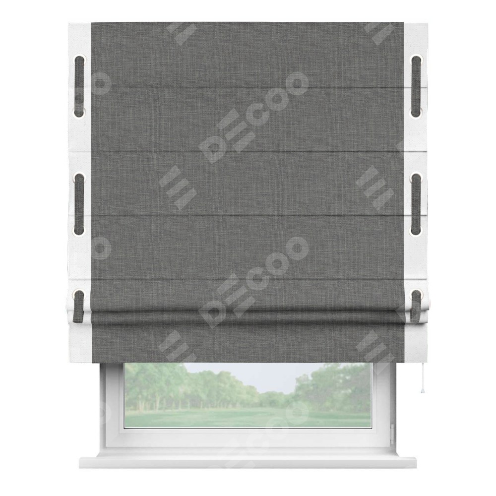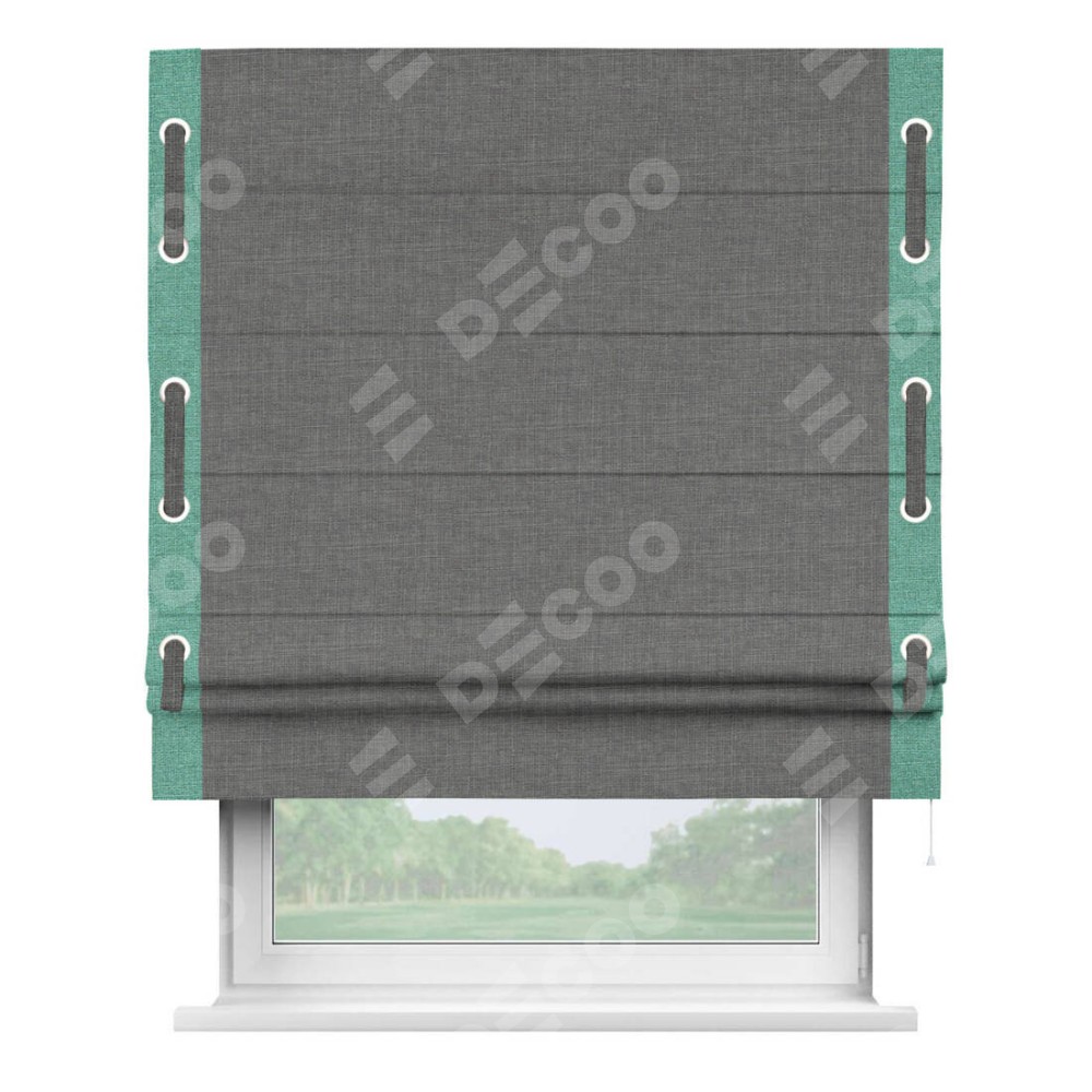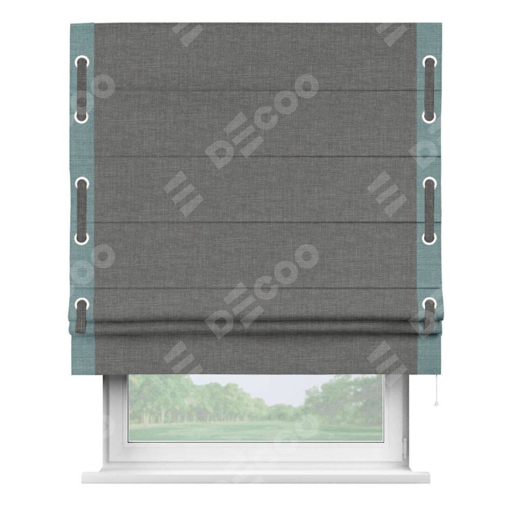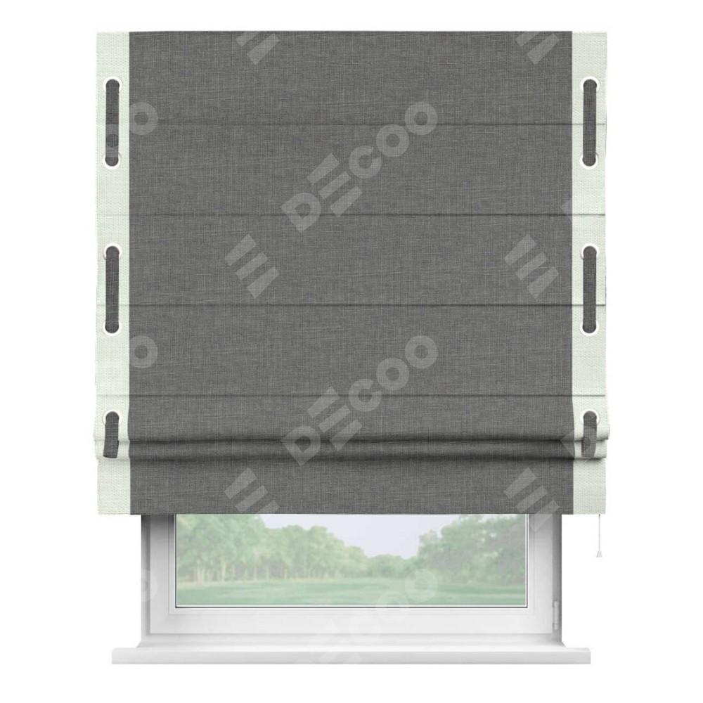Римская штора «Кортин» с кантом Стрим Дуо (люверсы с пояском), для проема, лён тёмно-серый