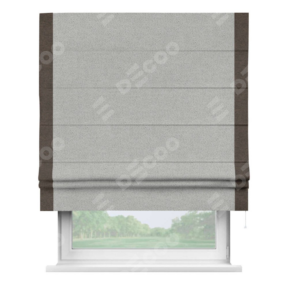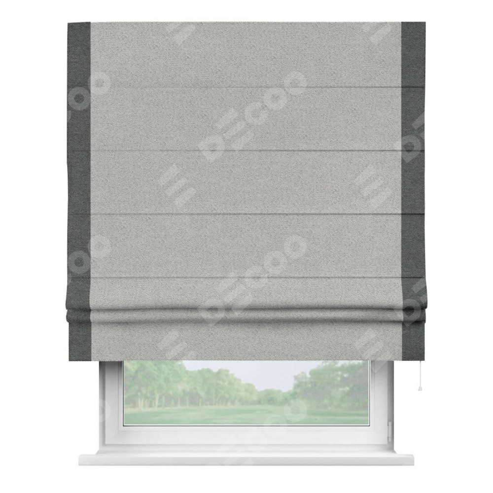 Римская штора «Кортин» для проема, твид блэкаут светло-серый, с кантом Стрим Дуо