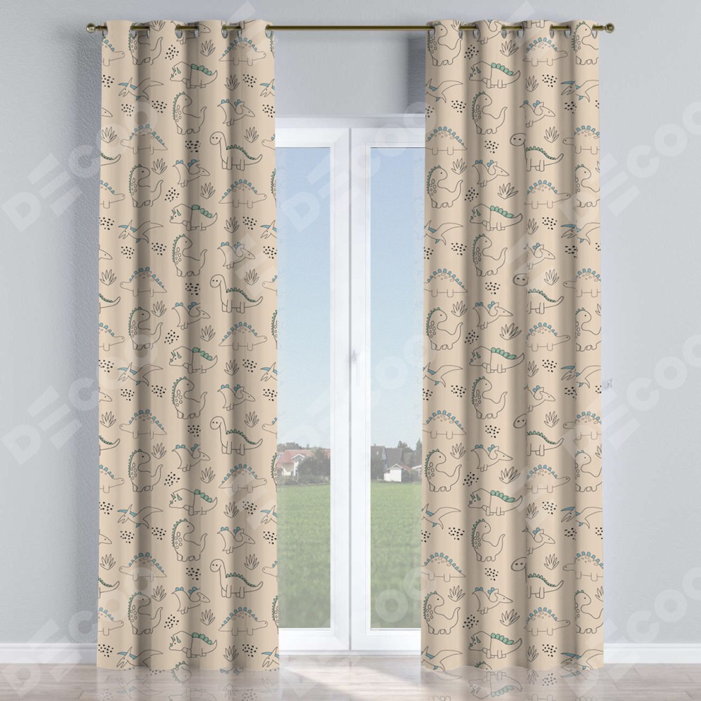 Комплект прямых штор, от производителя «Cortin», пошиты из ткани блэкаут с нанесением сублимационной печати «Динозаврики». Данная модель пошита на люверсах, комплектуется на выбор круглым карнизом и подходит для монтажа на стену или потолок. Прямые шторы на люверсах шьются по стандарту с коэффициентом 1/2 (на 100 см. ширины проёма 200 см. ширины ткани), отличительным преимуществом данной модели является простой способ монтажа. Достаточно повесить ее на трубу и штора готова!