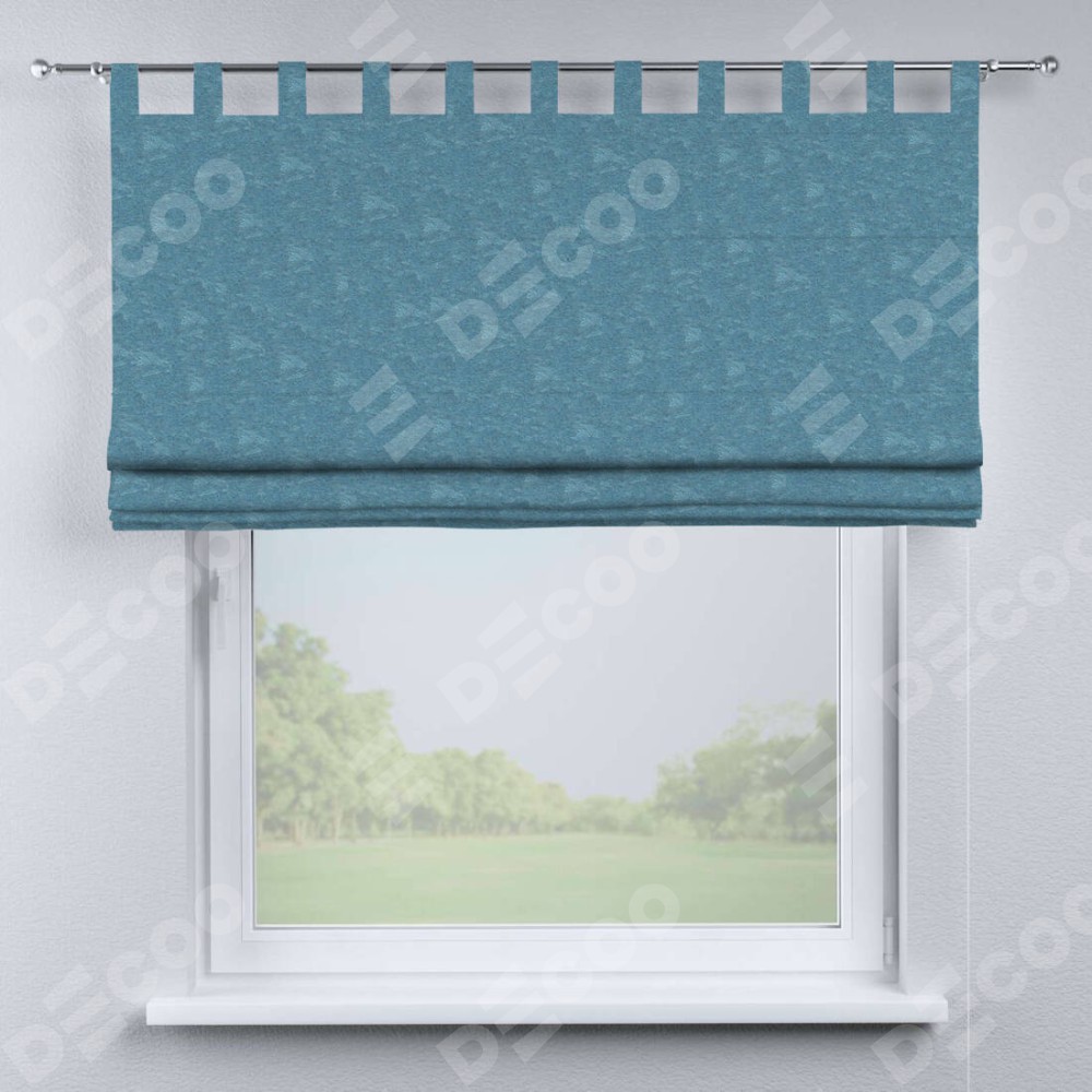 Римская штора производителя «Cortin», используется для проёма, пошита из ткани софт мрамор голубой, артикул ткани 93580. Данная модель пошита на петлях, комплектуется на выбор круглым карнизом и подходит для монтажа на стену. Римская штора на петлях имеет простую систему регулировки высоты, отличительным преимуществом данной модели является простой способ монтажа. Достаточно повесить ее на трубу и штора готова!