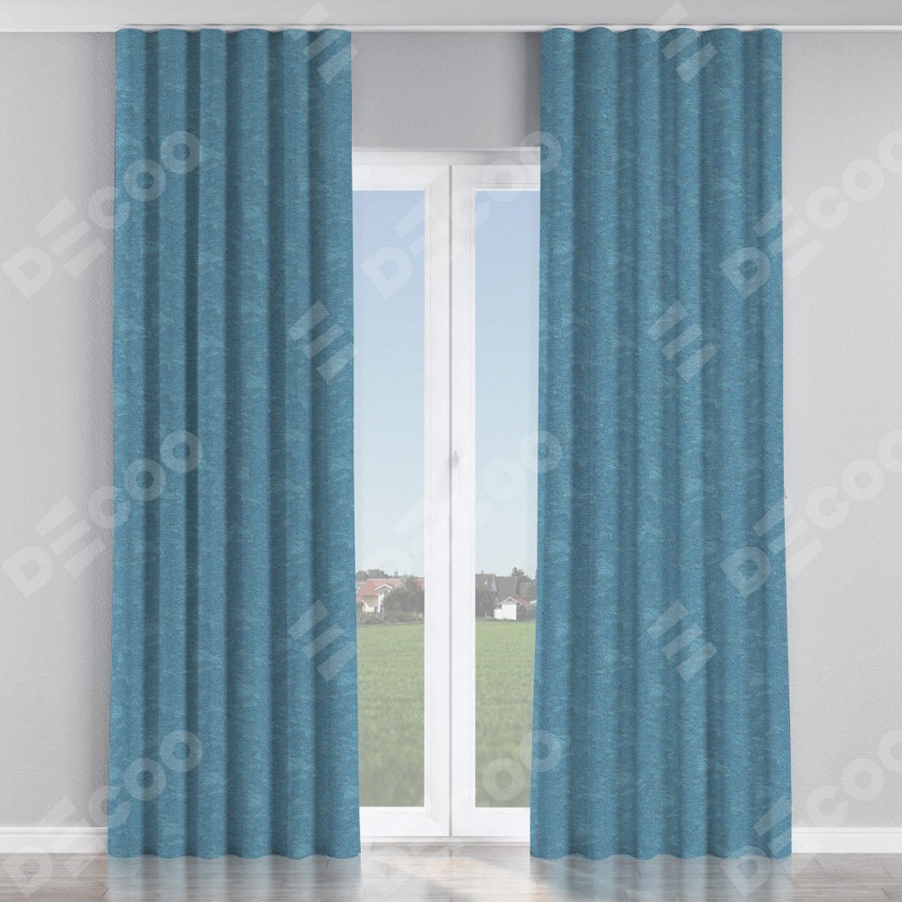 Комплект прямых штор, от производителя «Cortin», пошиты из ткани софт мрамор голубой, артикул ткани 93580. С изнаночной стороны в верхней части штор пристрачивается шторная лента с декоративными складками «Волна». Для создания элегантных складок прямые шторы шьются по стандарту с коэффициентом 1:2 (на 100 см. ширины проёма 200 см. ширины ткани).