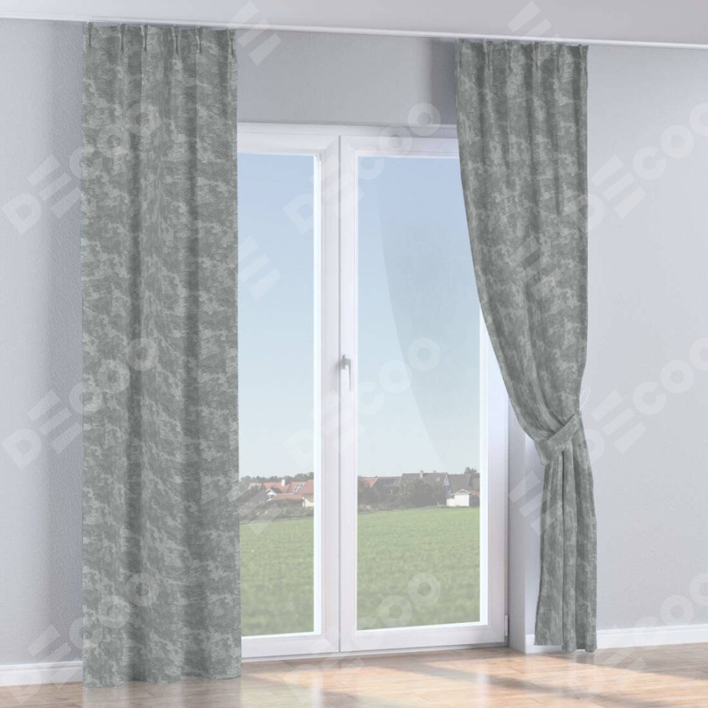Комплект прямых штор, от производителя «Cortin», пошиты из ткани софт мрамор серый, артикул ткани 93583. С изнаночной стороны в верхней части штор пристрачивается шторная лента с декоративными складками «Кустик». Для создания элегантных складок прямые шторы шьются по стандарту с коэффициентом 1:2 (на 100 см. ширины проёма 200 см. ширины ткани).