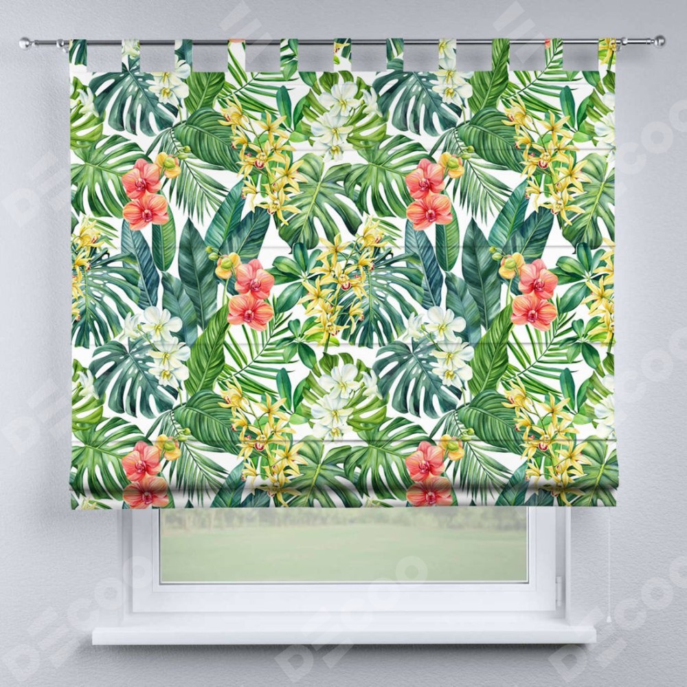 Римская штора производителя «Cortin», используется для проёма, пошита из ткани блэкаут с нанесением сублимационной печати «Орхидеи в тропиках». Данная модель пошита на петлях, комплектуется на выбор круглым карнизом и подходит для монтажа на стену. Римская штора на петлях имеет простую систему регулировки высоты, отличительным преимуществом данной модели является простой способ монтажа. Достаточно повесить ее на трубу и штора готова!