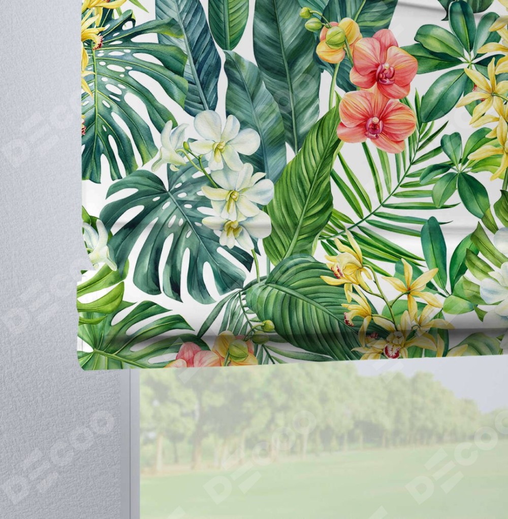 Римская штора на петлях «Орхидеи в тропиках»