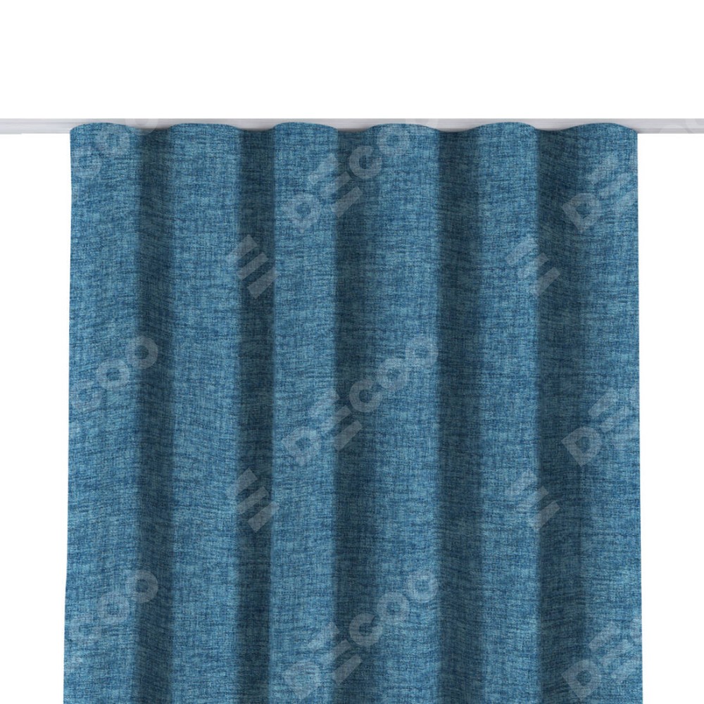 Комплект прямых штор, от производителя «Cortin», пошиты из ткани рогожка димаут джинс, артикул ткани 91026. С изнаночной стороны в верхней части штор пристрачивается шторная лента с декоративными складками «Волна». Для создания элегантных складок прямые шторы шьются по стандарту с коэффициентом 1:2 (на 100 см. ширины проёма 200 см. ширины ткани).