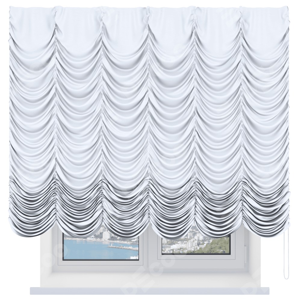 Французская штора производителя «Cortin», используется для проёма, пошита из ткани вельвет дымчато-белый, артикул ткани 85535. Имеет универсальный механизм и подходит для монтажа: на потолок и на стену.