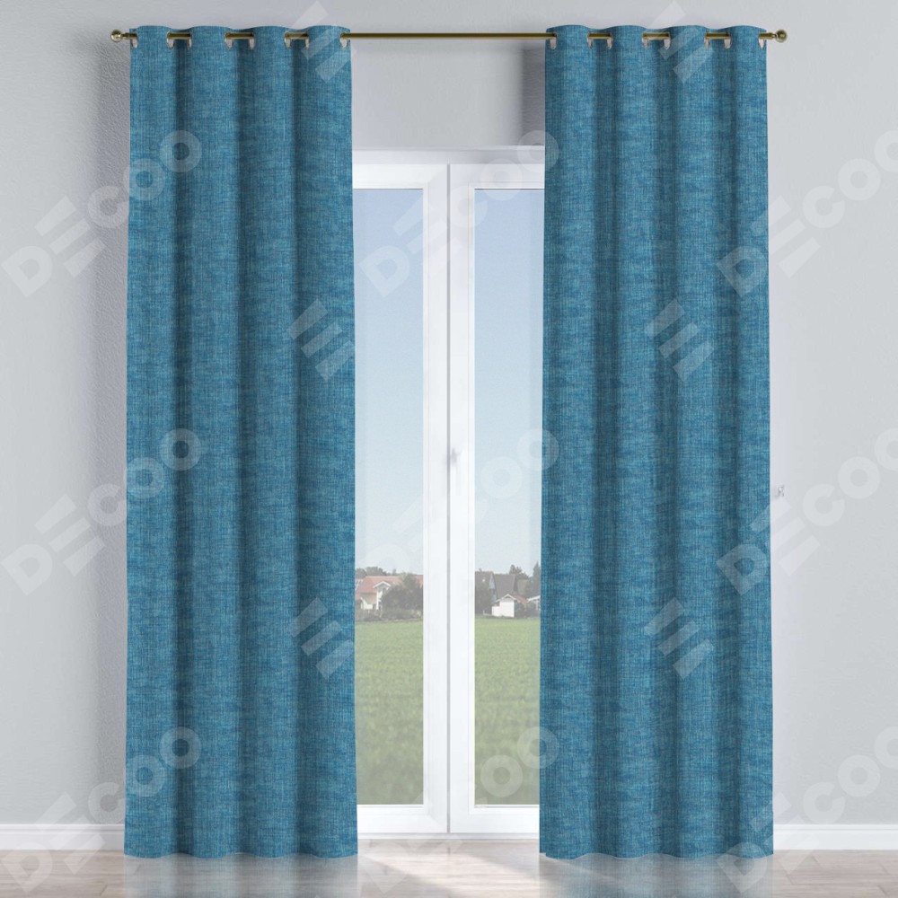 Комплект прямых штор, от производителя «Cortin», пошиты из ткани рогожка димаут лазурно-синий, артикул ткани 91024. Данная модель пошита на люверсах, комплектуется на выбор круглым карнизом и подходит для монтажа на стену или потолок. Прямые шторы на люверсах шьются по стандарту с коэффициентом 1/2 (на 100 см. ширины проёма 200 см. ширины ткани), отличительным преимуществом данной модели является простой способ монтажа. Достаточно повесить ее на трубу и штора готова!