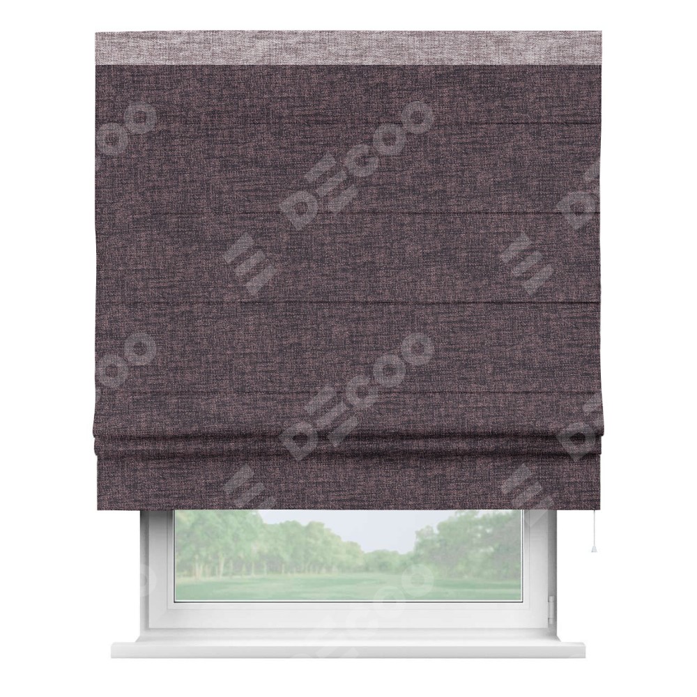 Римская штора пошита из ткани рогожка димаут розово-коричневый, артикул: 91020, с отделкой кантом «Кинг» отличается своей необычной особенностью: кант располагается исключительно сверху шторы. Такой дизайн делает акцент на верхней части окна, визуально поднимая потолок и придавая интерьеру более возвышенный и изысканный вид. Отделка кантом на верхней кромке не только украшает штору, но и может служить дополнительной защитой от износа в месте наибольшего контакта с механизмом управления шторой.