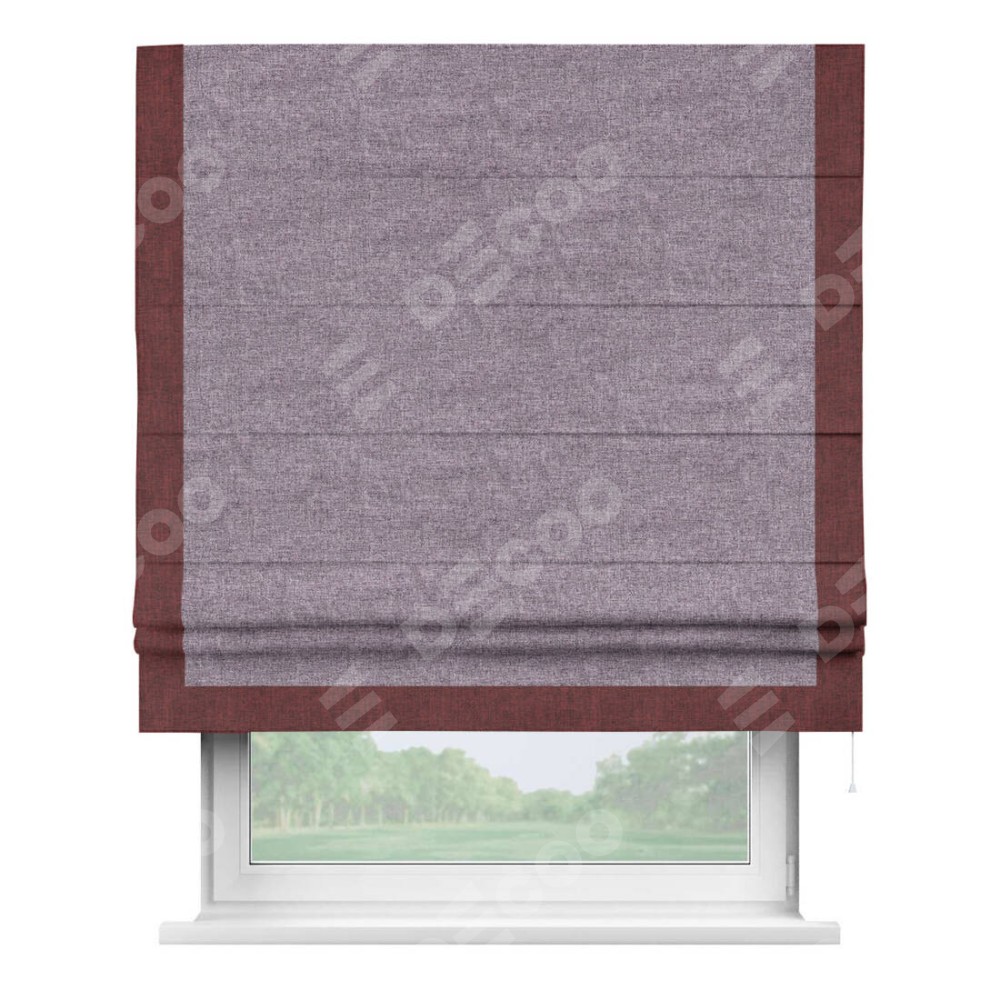 Римская штора с отделкой кантом «Виктория», пошита из ткани лён кашемир фиолетовый, артикул: 17211. представляет собой элегантное решение для оконного оформления. Кант по бокам и снизу шторы добавляет изысканности и аккуратности внешнему виду, подчеркивая линии и форму шторы. Этот элемент декора не только украшает, но и выполняет практическую функцию, защищая края ткани от износа. Кант может быть выполнен в контрастном или гармонирующем цвете, что позволяет добиться различных стилевых эффектов и легко вписать штору в интерьер комнаты.