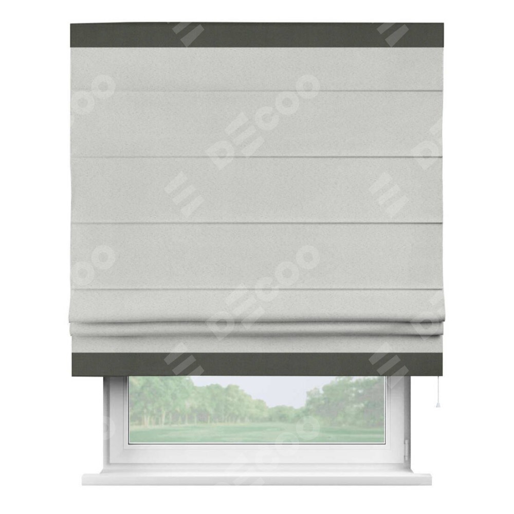 Римская штора пошита из ткани однотонный блэкаут милк, артикул: 23, с отделкой кантом «Горизонт» предлагает уникальное дизайнерское решение, при котором кант располагается только вверху и снизу шторы. Такое решение делает акцент на горизонтальных линиях, визуально расширяя пространство и придавая окну более строгий и организованный вид. Отделка кантом в этих ключевых местах не только украшает штору, но и способствует её долговечности, защищая наиболее уязвимые к износу края.