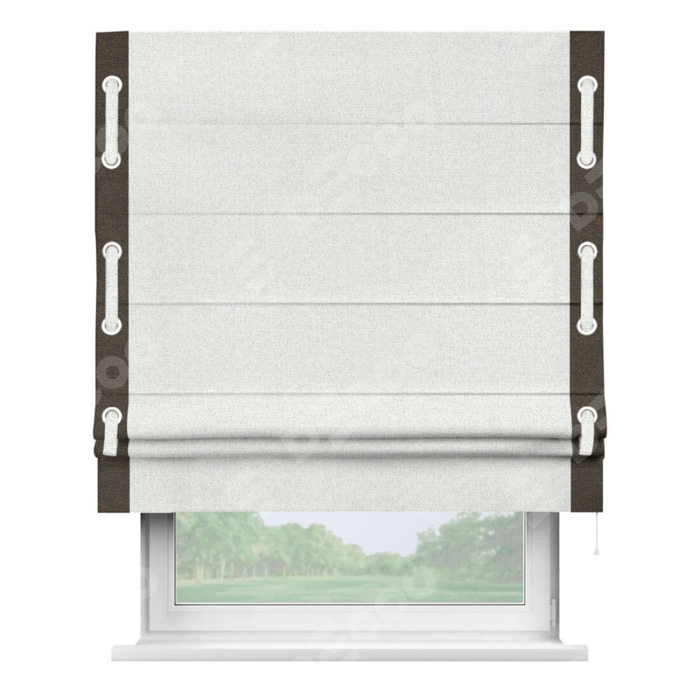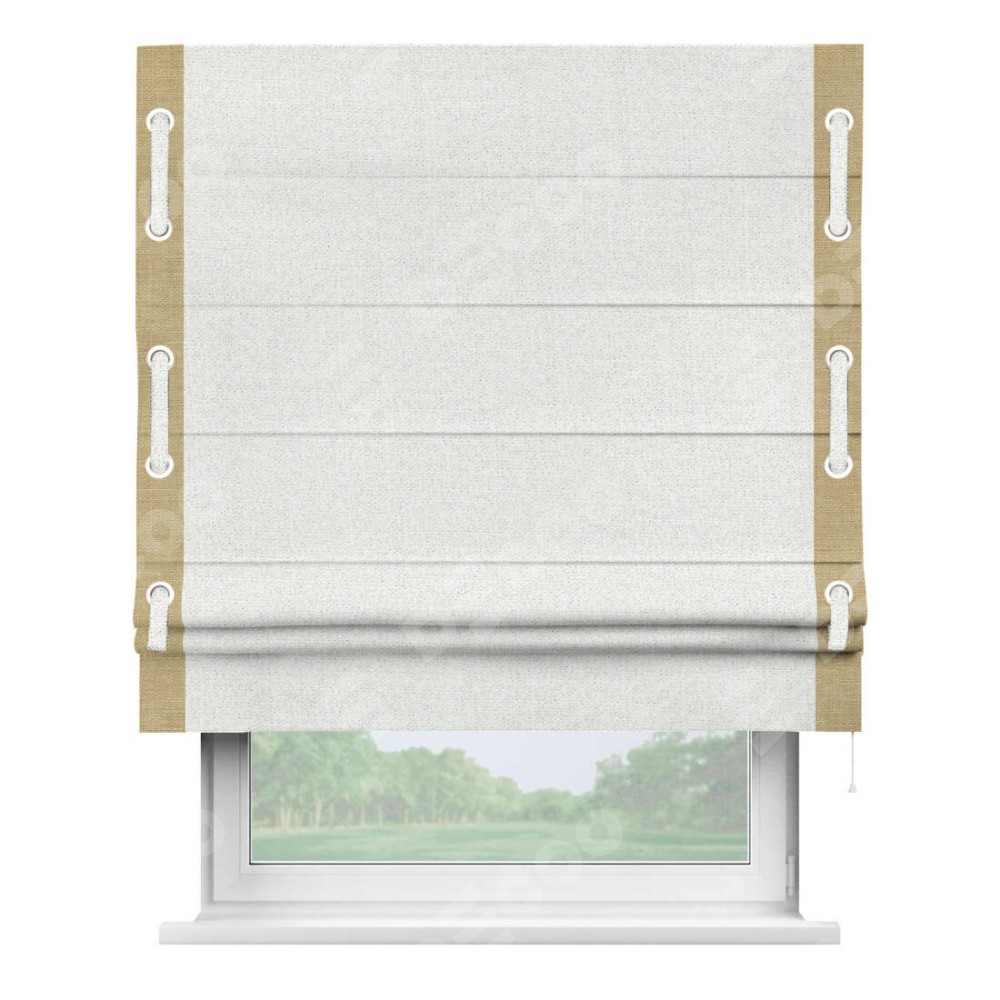 Римская штора «Кортин» для проема, лён шампань, с кантом Стрим Дуо (люверсы с пояском)