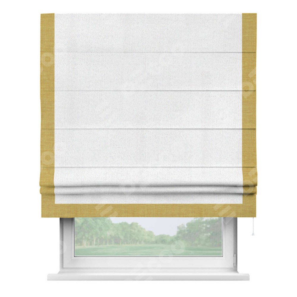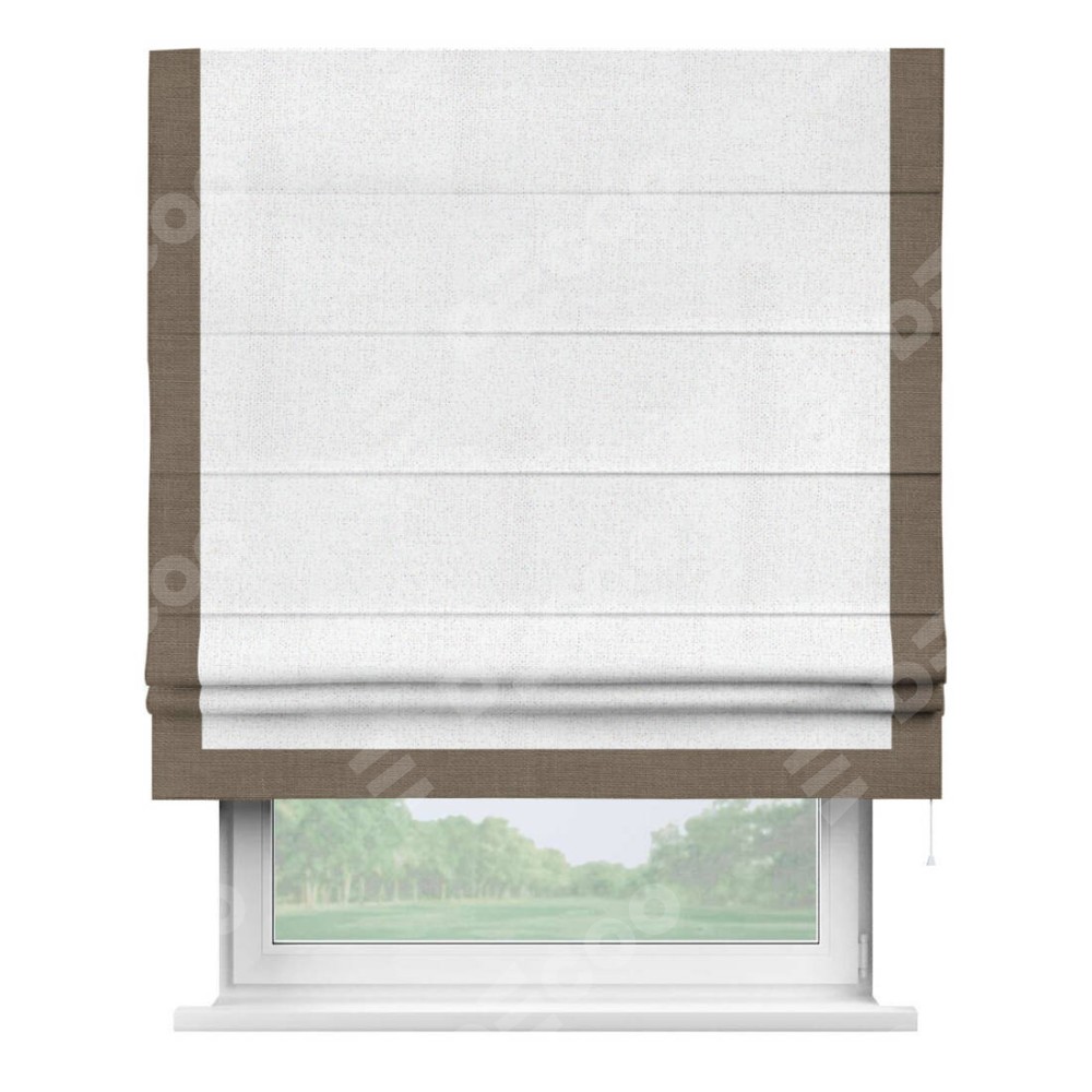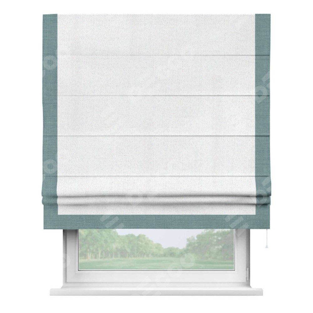 Римская штора с отделкой кантом «Виктория», пошита из ткани лён белоснежный, артикул: 95632. представляет собой элегантное решение для оконного оформления. Кант по бокам и снизу шторы добавляет изысканности и аккуратности внешнему виду, подчеркивая линии и форму шторы. Этот элемент декора не только украшает, но и выполняет практическую функцию, защищая края ткани от износа. Кант может быть выполнен в контрастном или гармонирующем цвете, что позволяет добиться различных стилевых эффектов и легко вписать штору в интерьер комнаты.