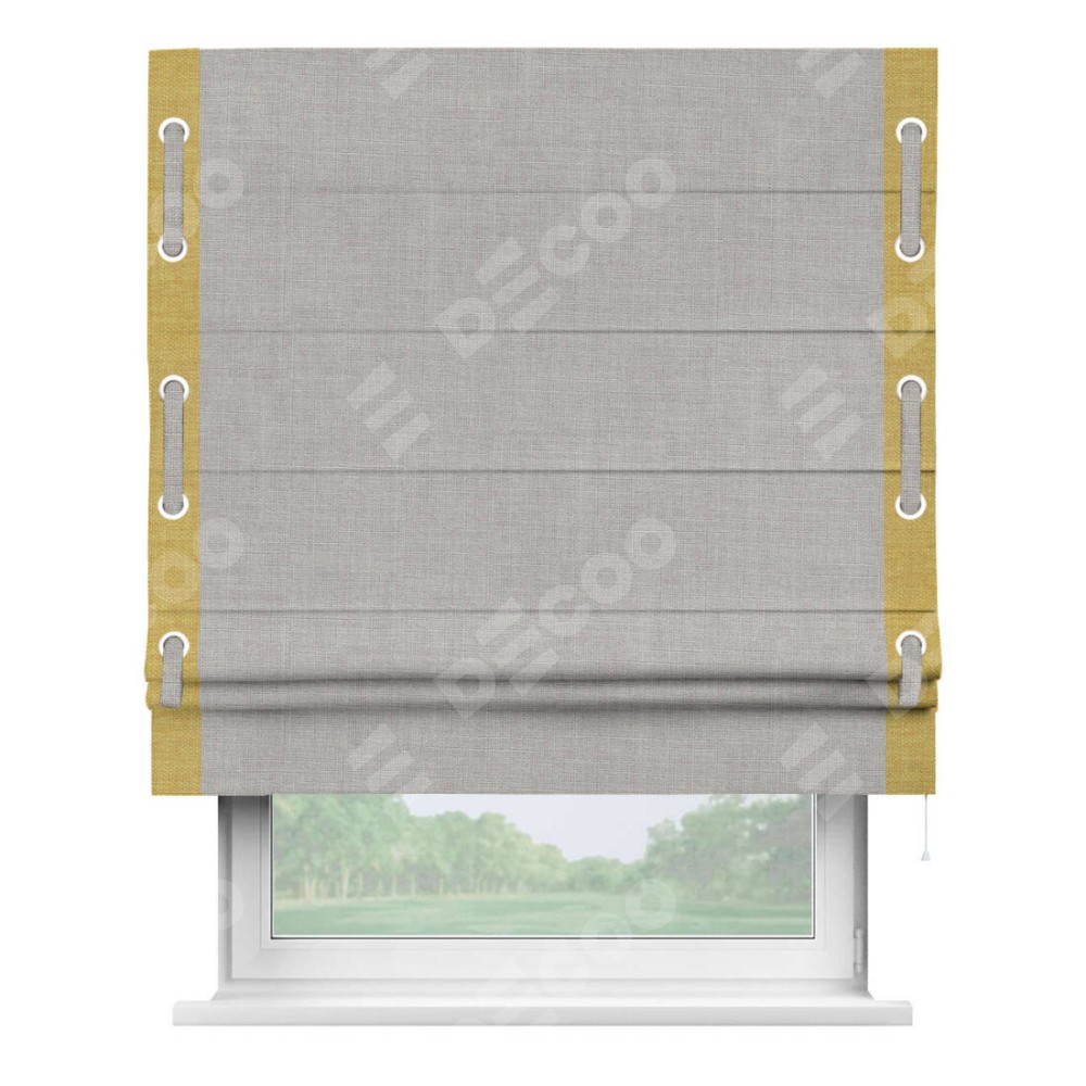 Римская штора «Кортин» для проёма, лён серый, с кантом Стрим Дуо (люверсы с пояском)