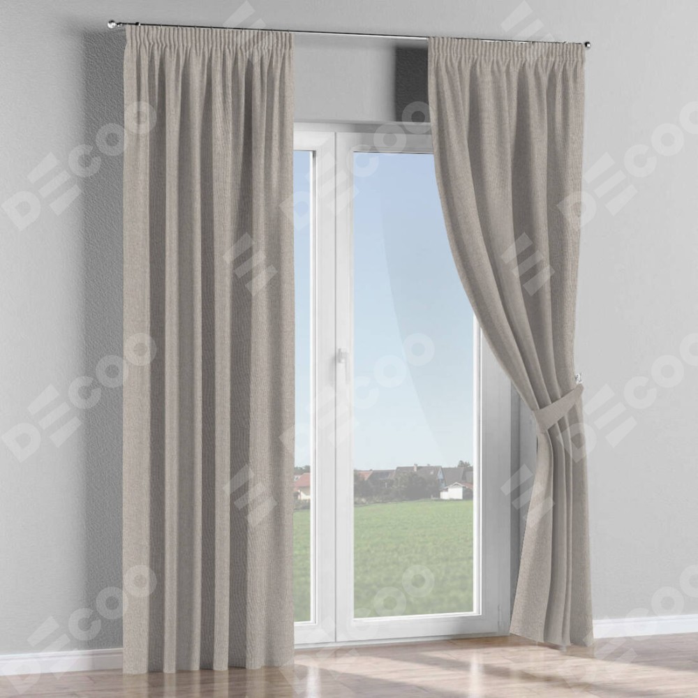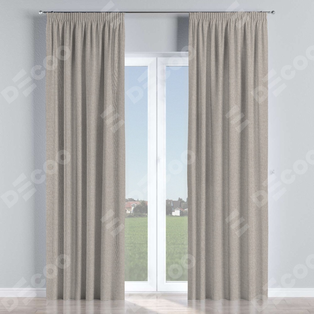 Комплект штор лён димаут серо-бежевый, на тесьме «Карандаш»