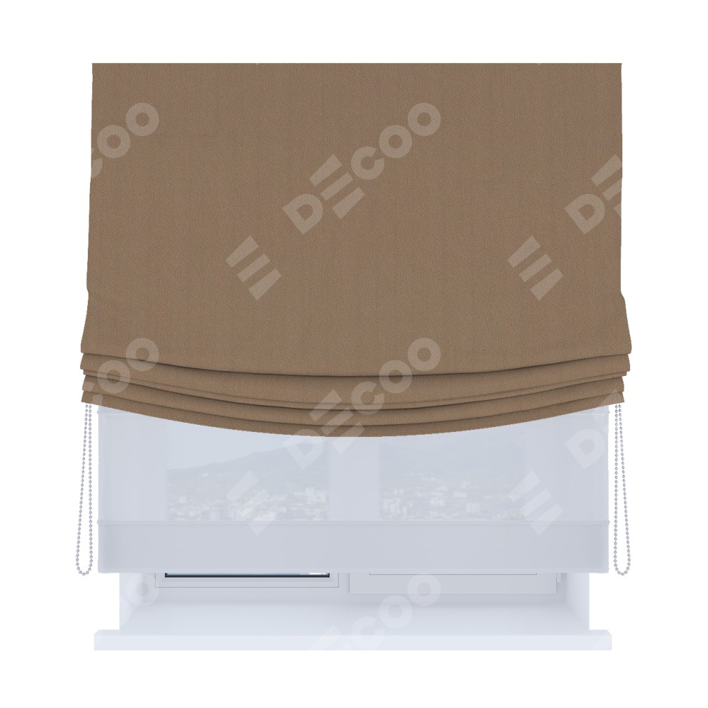 Двойная римская штора «День-ночь» от производителя Cortin предназначена для использования в проёмах. Эта штора уникальна тем, что состоит из двух полотен. На лицевой стороне находится однотонный блэкаут кофейно-бежевый (артикул: 91566−2), обеспечивающий эффективное затемнение. В комплект также входит вторая ткань — легкий белый тюль (артикул: V-01), который добавляет изящества и легкости оформлению окна. Кроме того, доступны и другие разновидности ткани тюль, выбор которых доступен по ссылке .