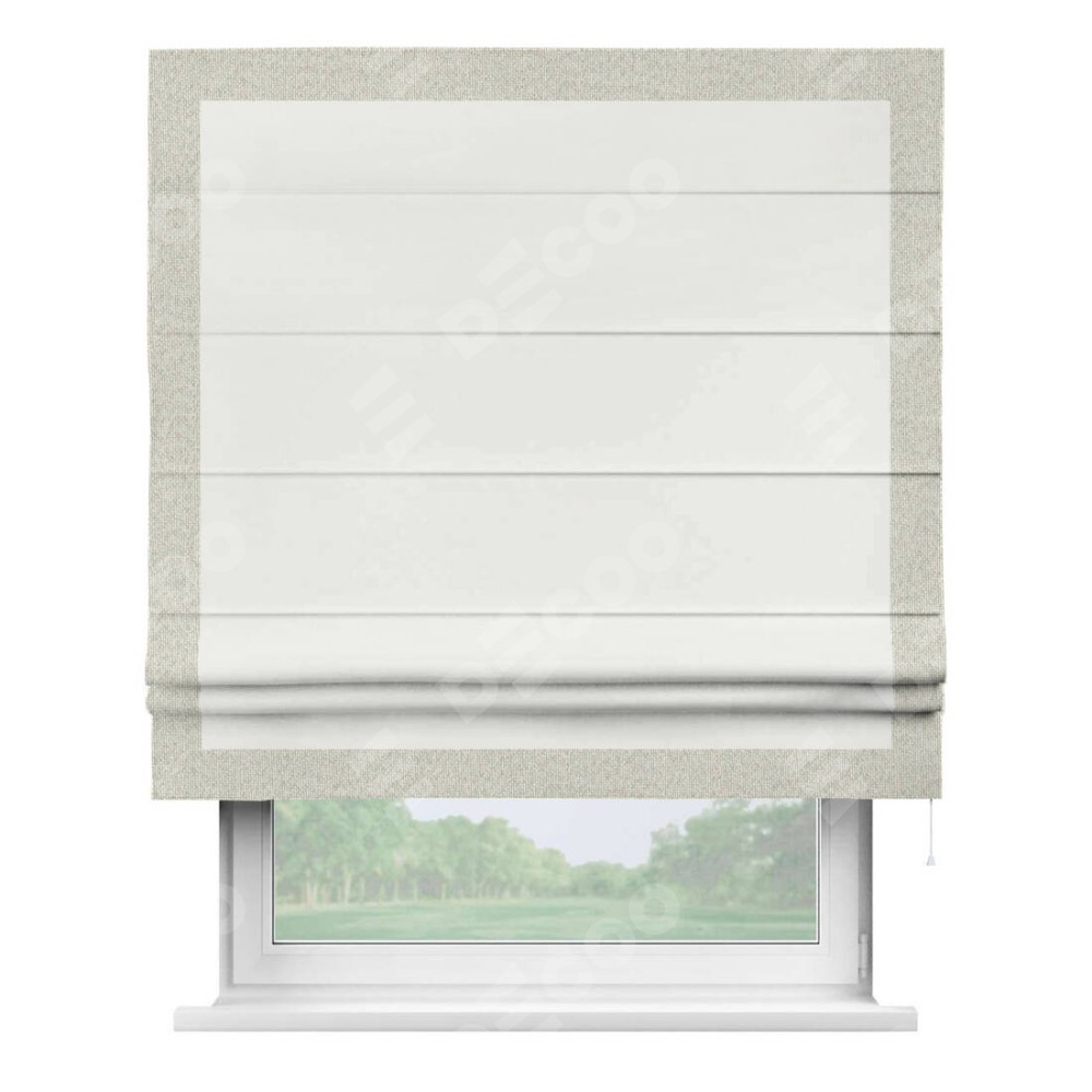 Классическая римская штора производителя «Cortin», пошита из ткани лён димаут молочный, артикул: 29. Имеет универсальный механизм и подходит для монтажа: на потолок, на стену и в нишу.