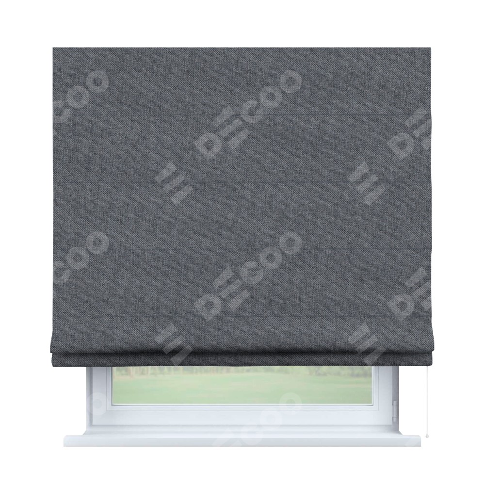 Классическая римская штора производителя «Cortin», пошита из ткани лён блэкаут тёмно-серый, артикул: 139663. Имеет универсальный механизм и подходит для монтажа: на потолок, на стену и в нишу.