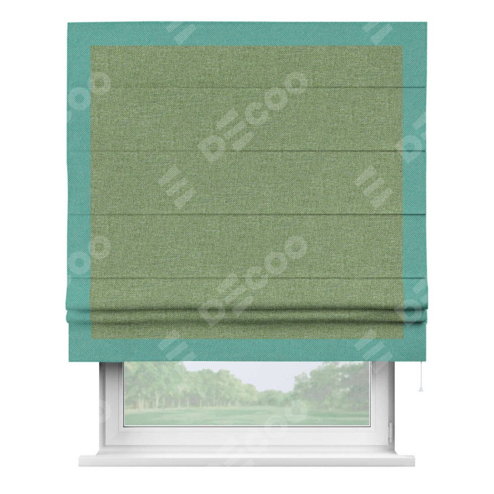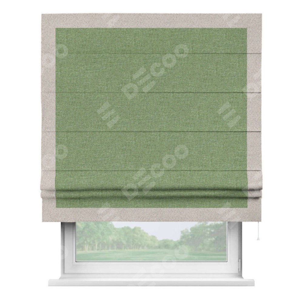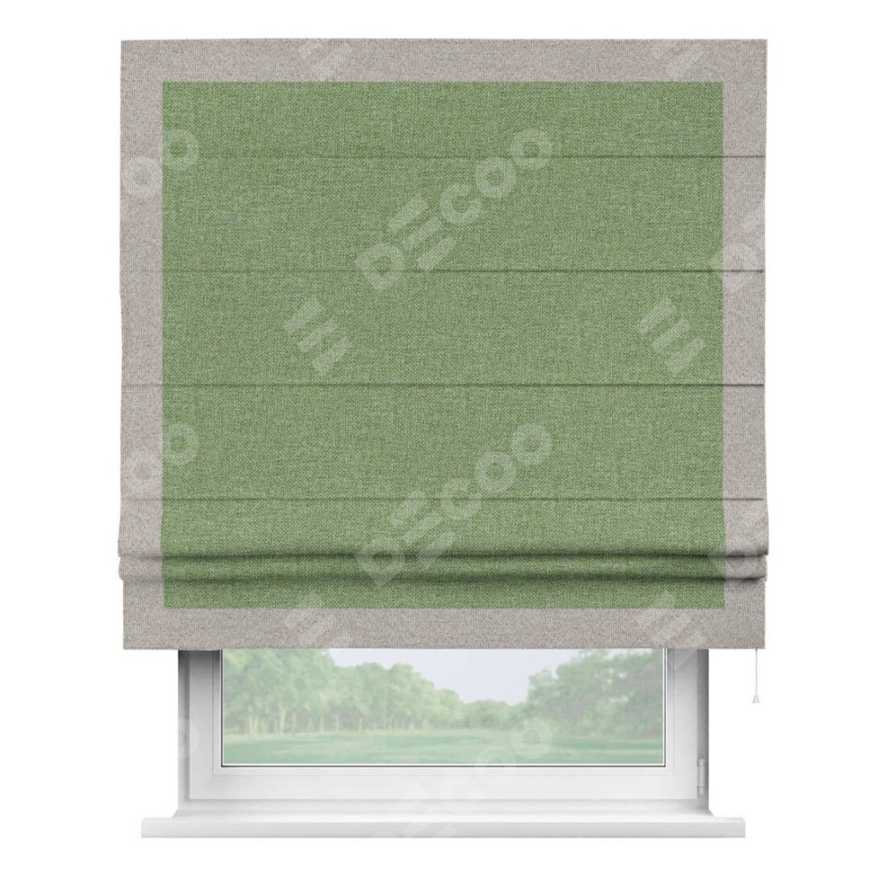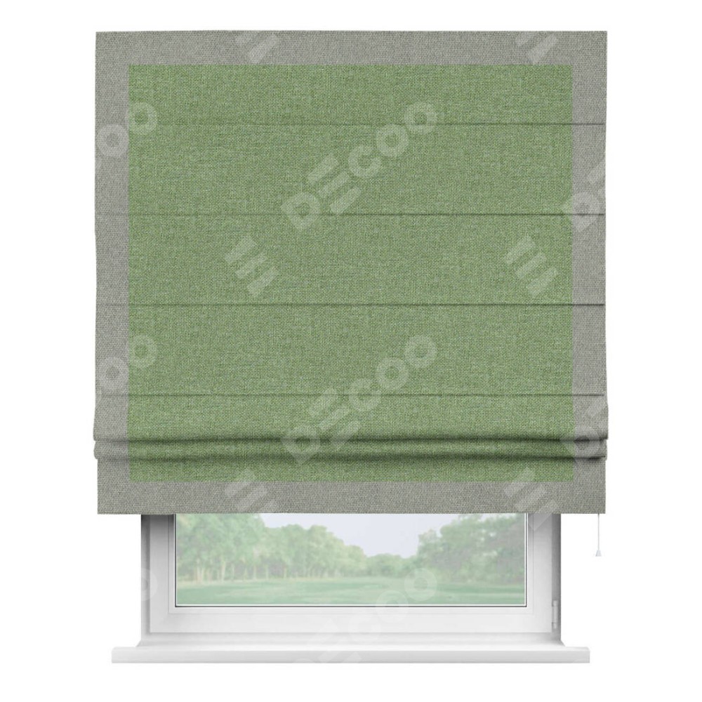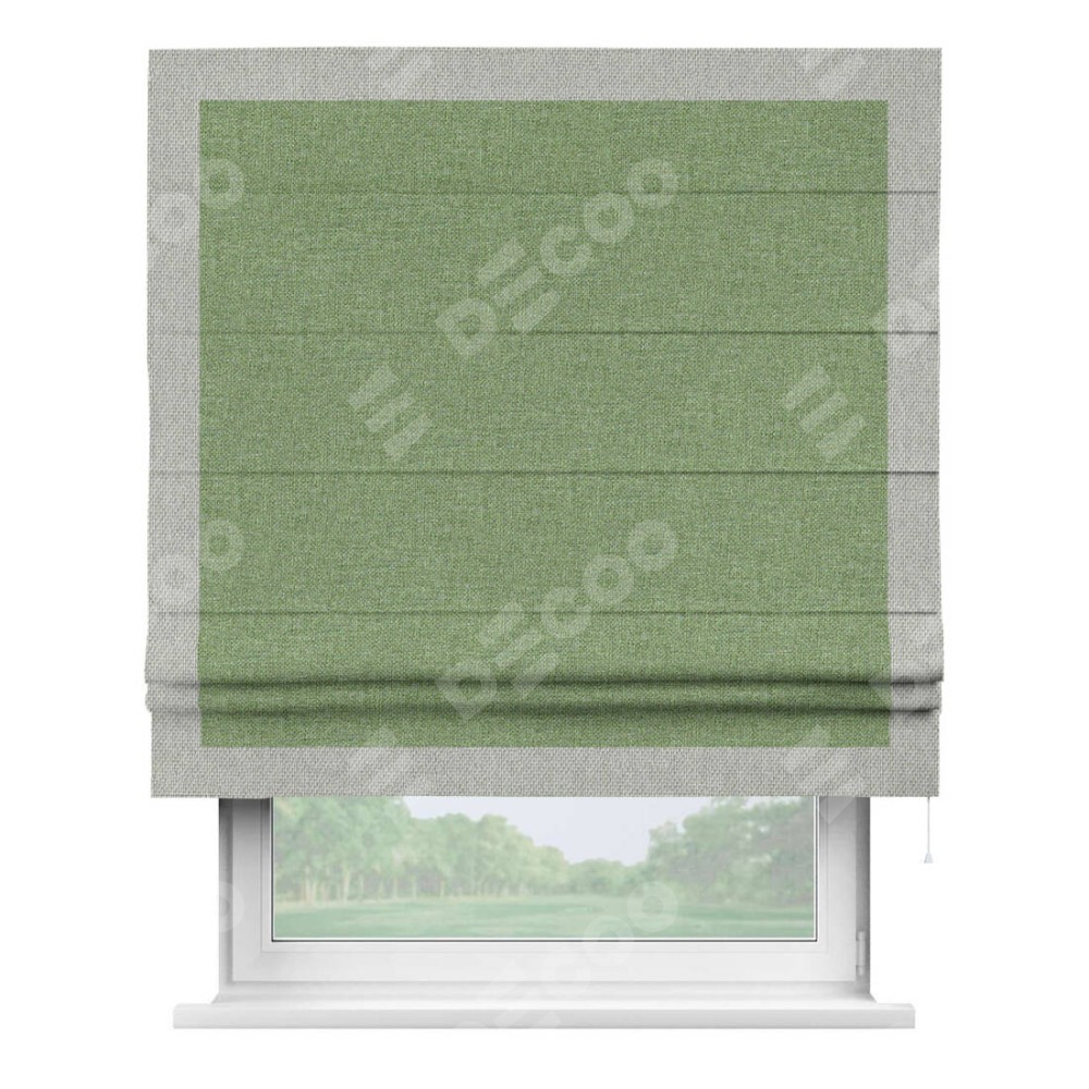 Римская штора «Cortin» для проёма, лён димаут светло-салатовый с кантом Чесс