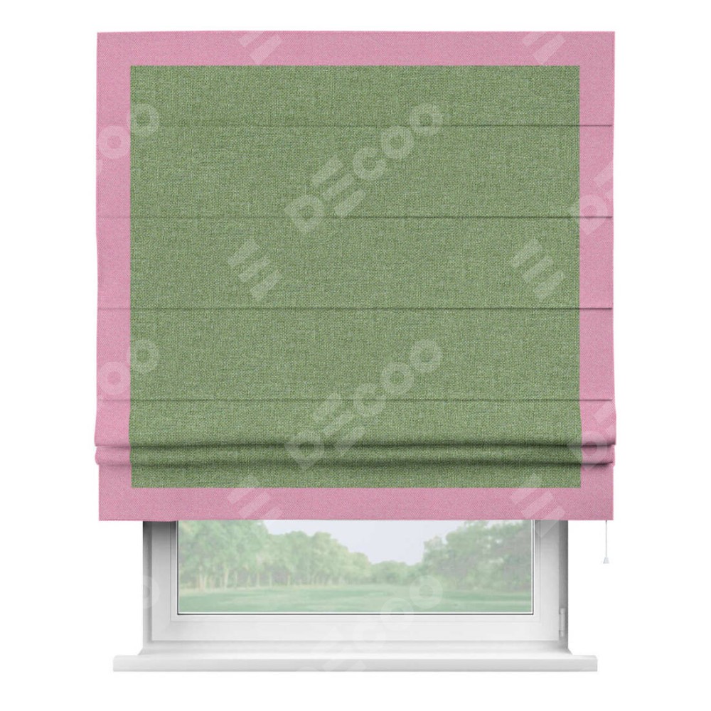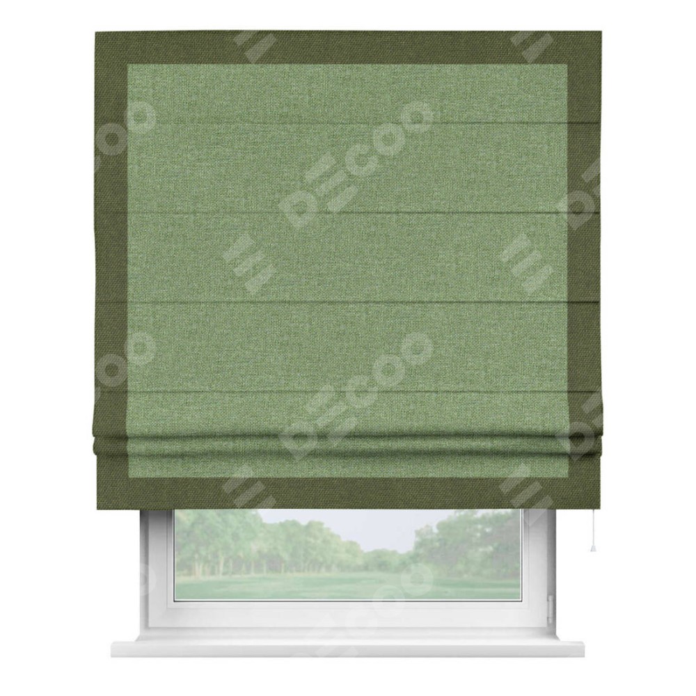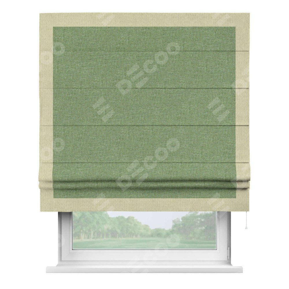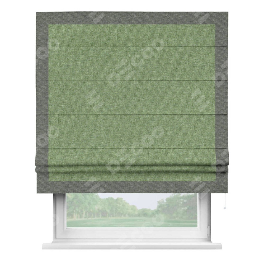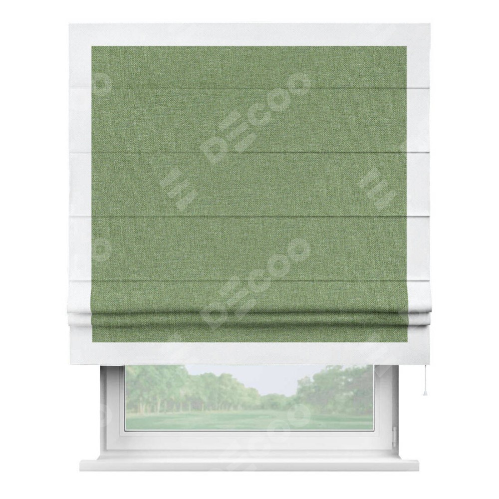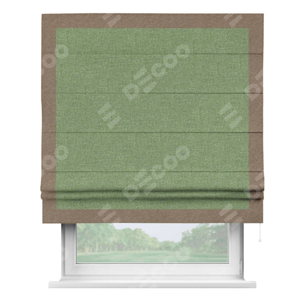 Римская штора «Cortin» для проёма, лён димаут светло-салатовый с кантом Чесс