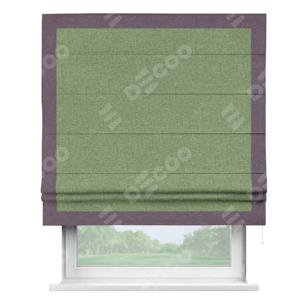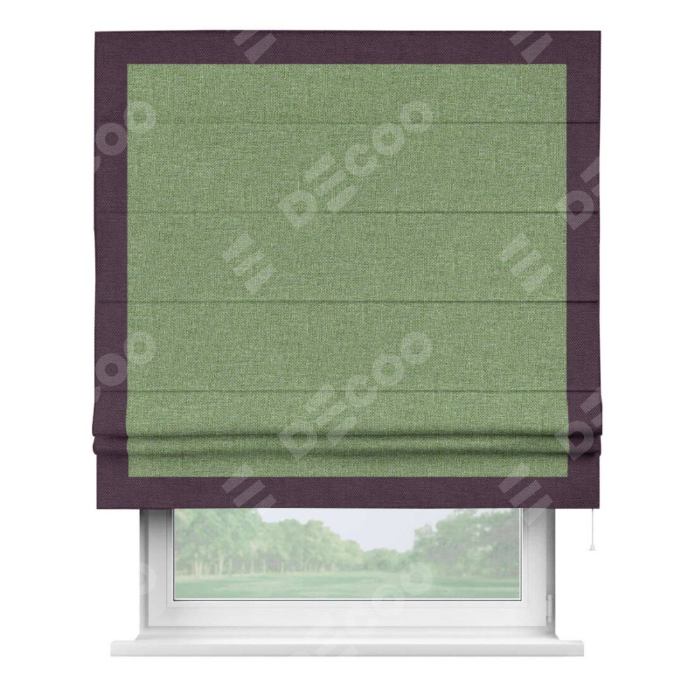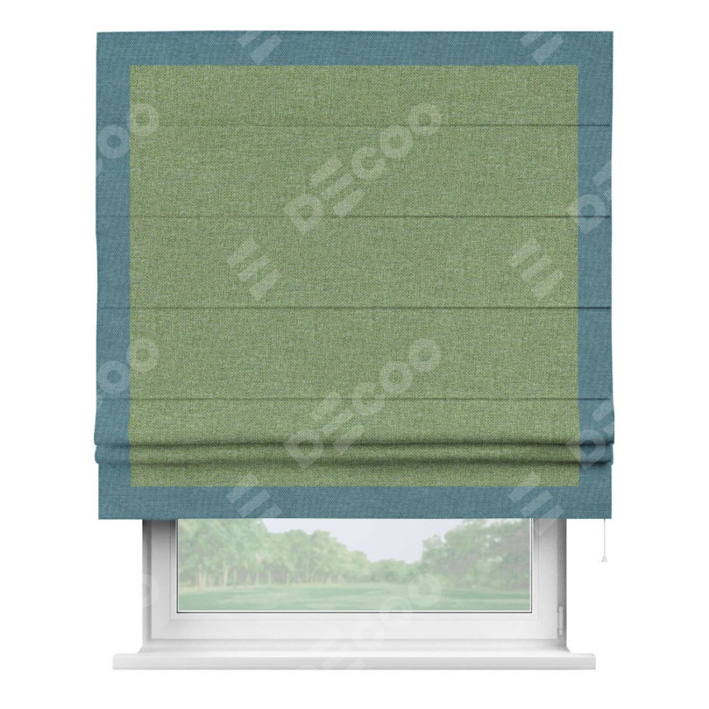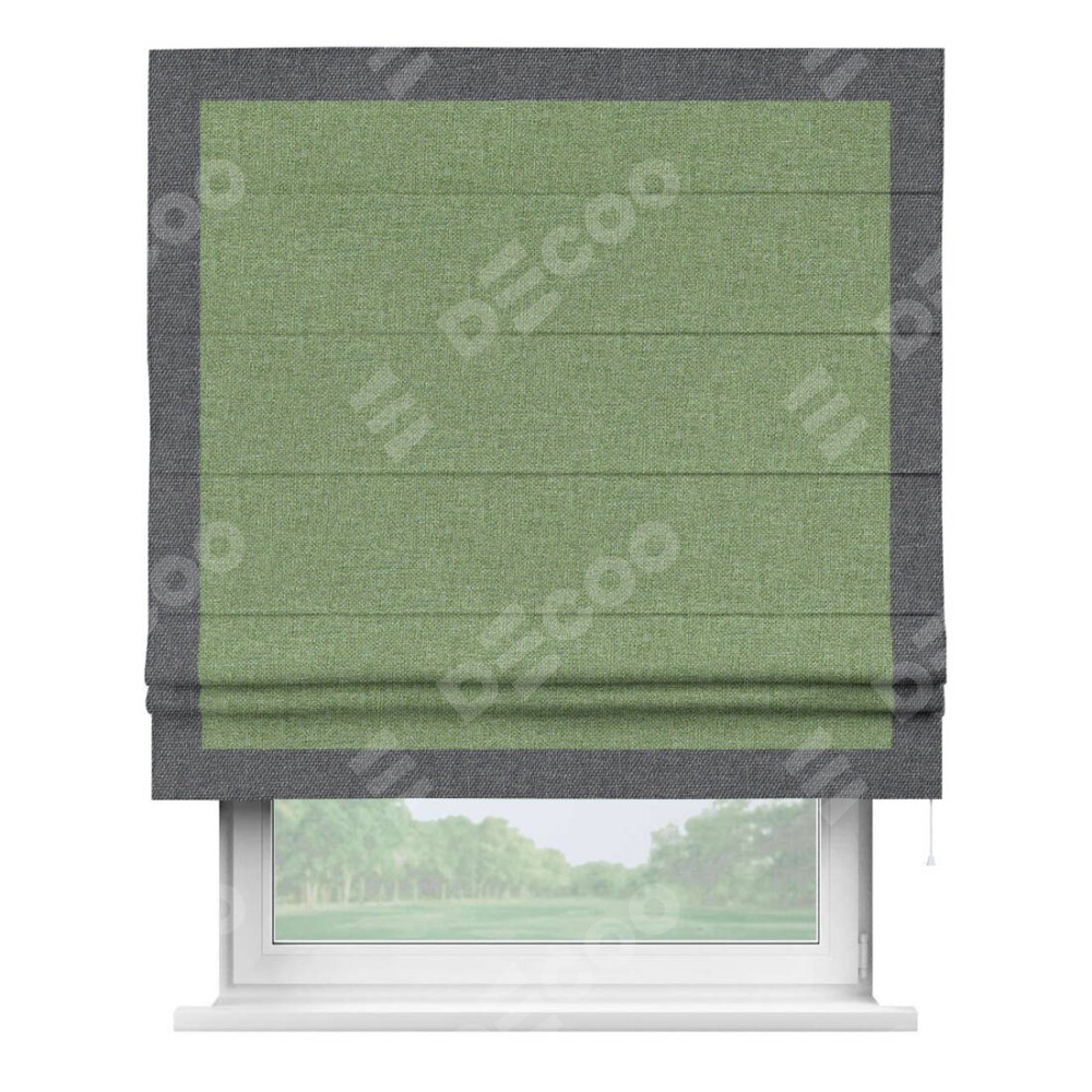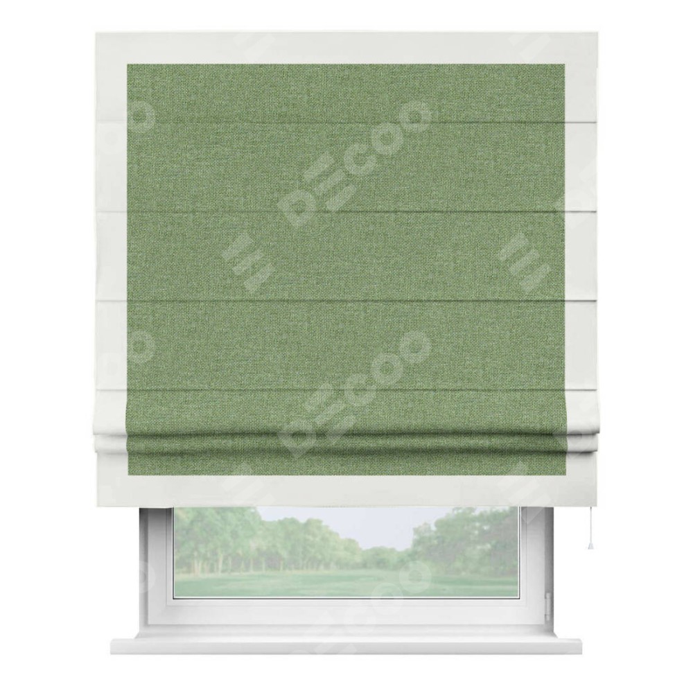 Римская штора «Cortin» для проёма, лён димаут светло-салатовый с кантом Чесс