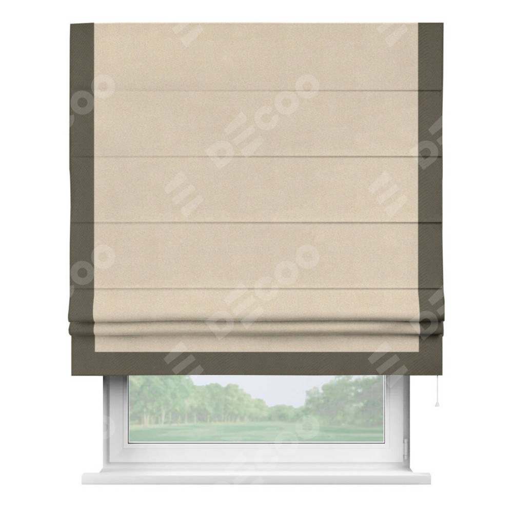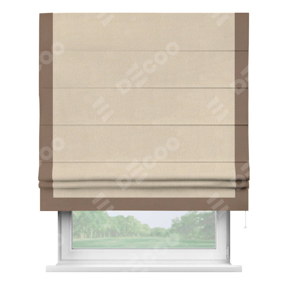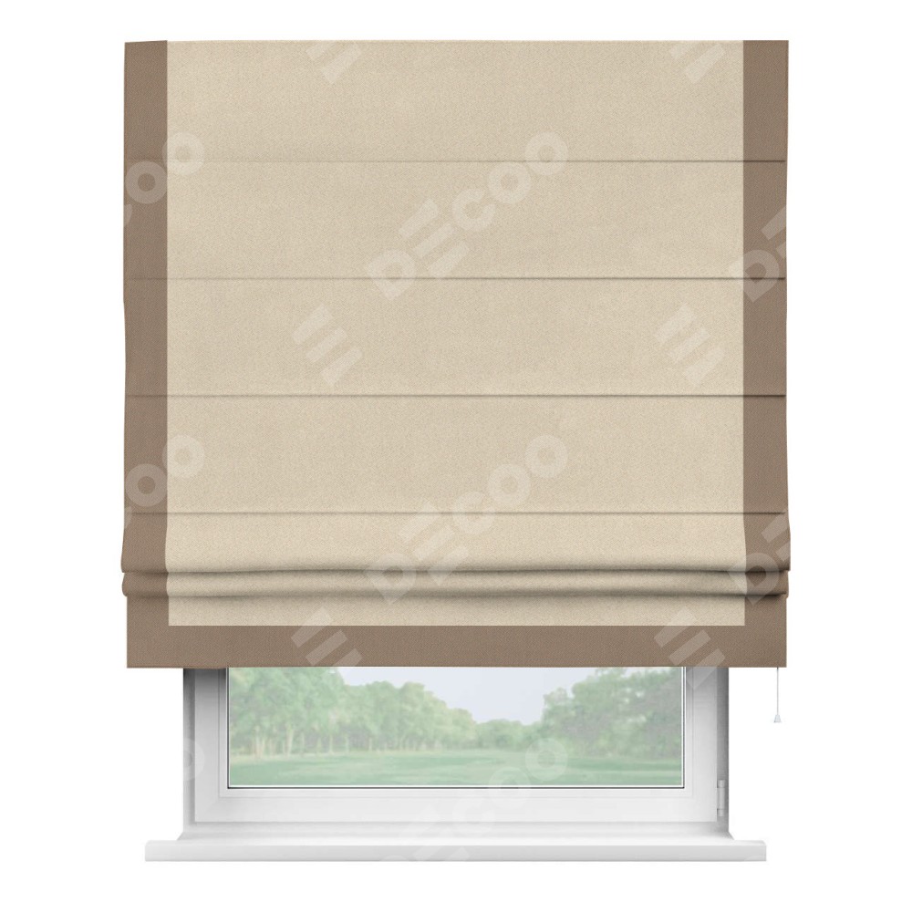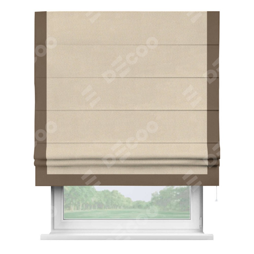 Римская штора «Cortin» для проёма, блэкаут однотонный кофейно-бежевый с кантом Виктория представлена к заказу по индивидуальным размерам. Рабочий артикул: 30188. Цена будет зависеть от выбранных размеров и начинается от 3 994 руб. В интернет-магазине Decoo вы сможете выбрать товар в любых размерных вариациях.