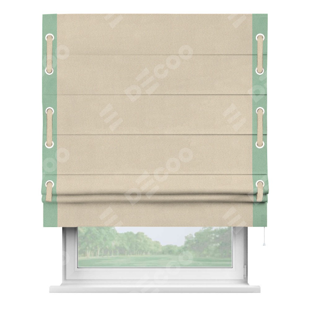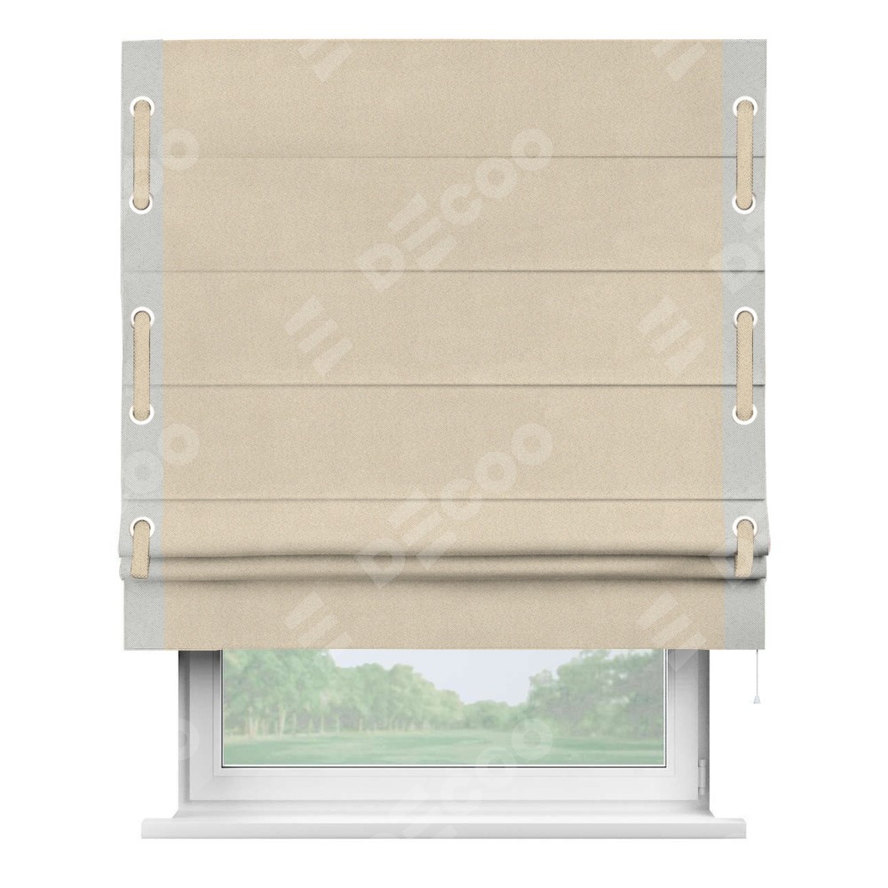 Римская штора «Cortin» для проёма, блэкаут однотонный кофейно-бежевый с кантом Стрим Дуо (люверсы с пояском)