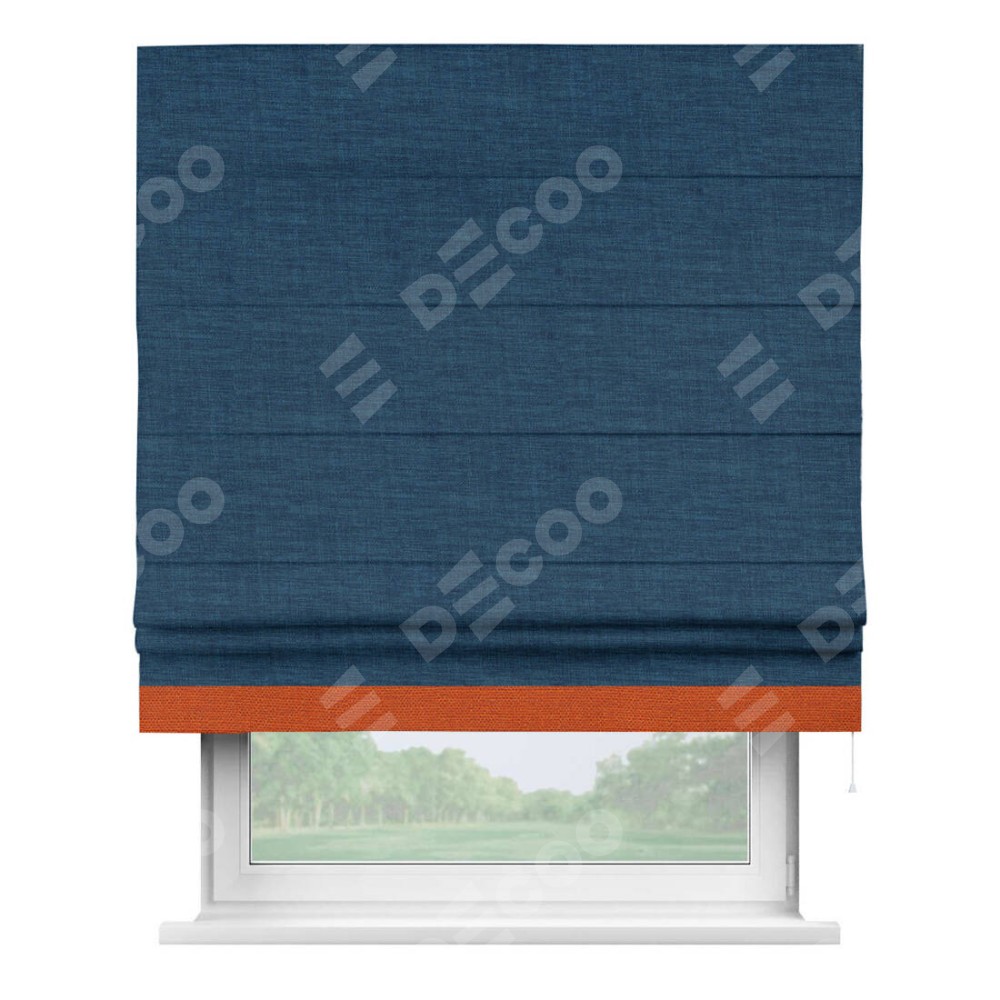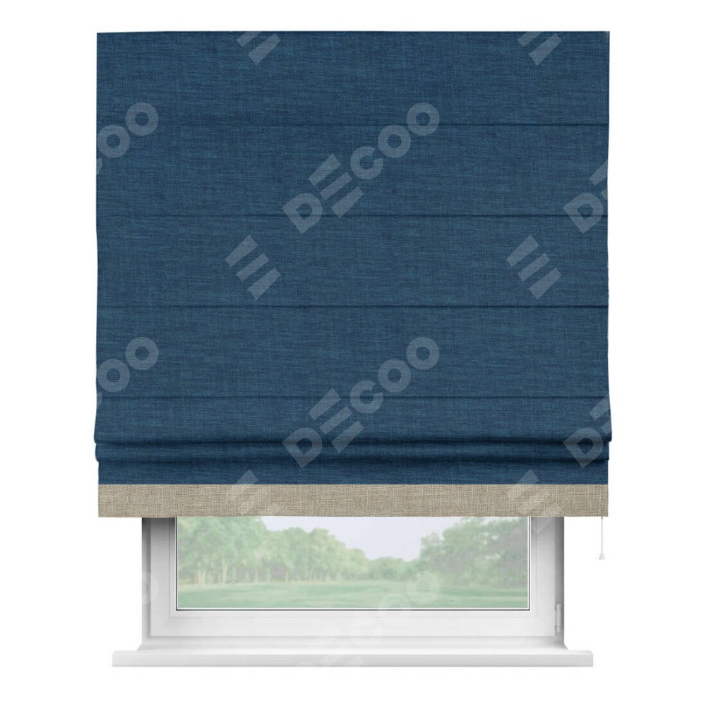 Римская штора «Кортин» для проёма, лён синий, с кантом Джестер