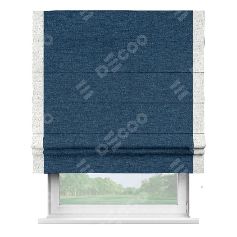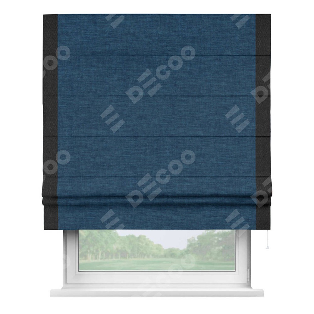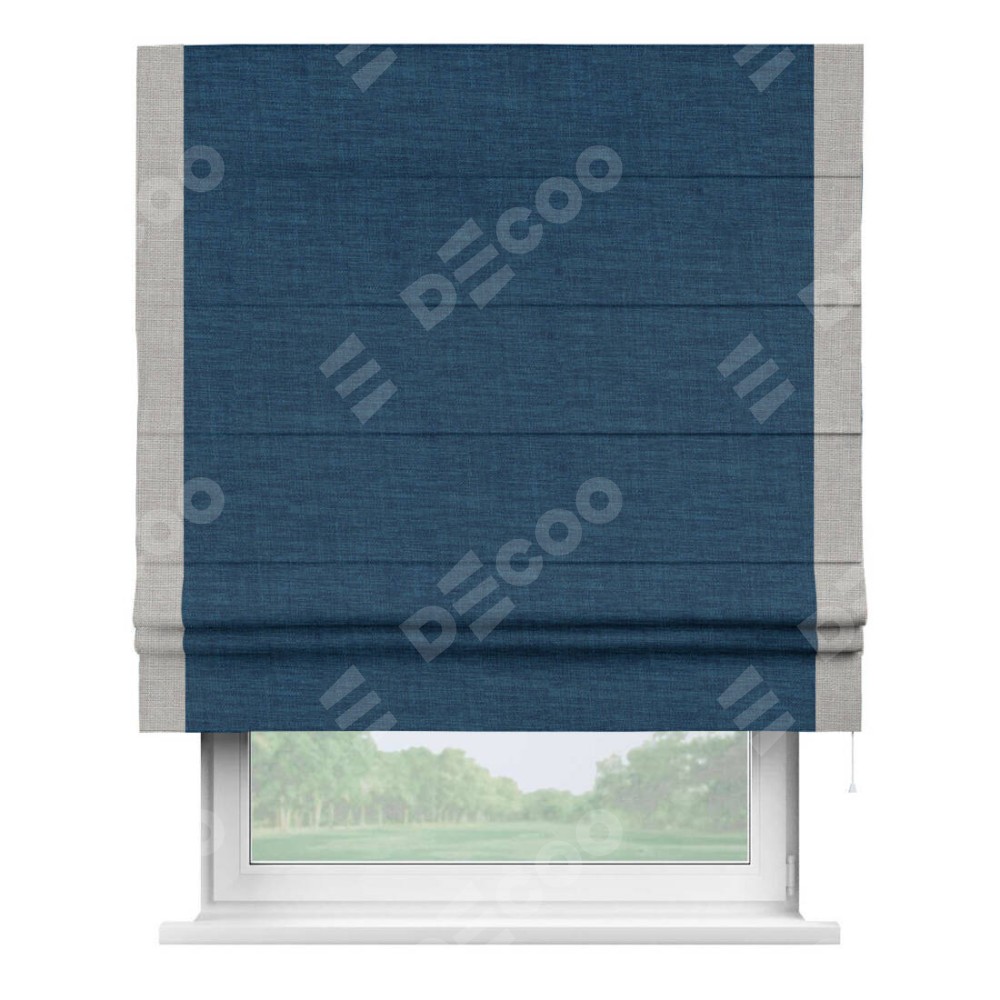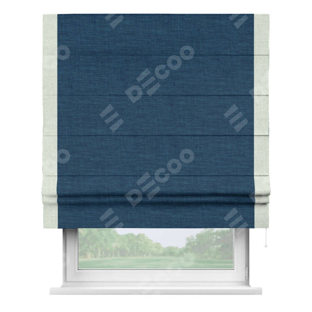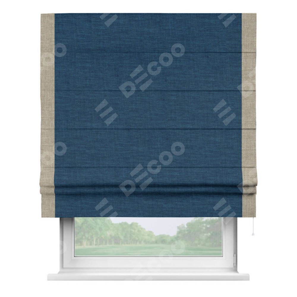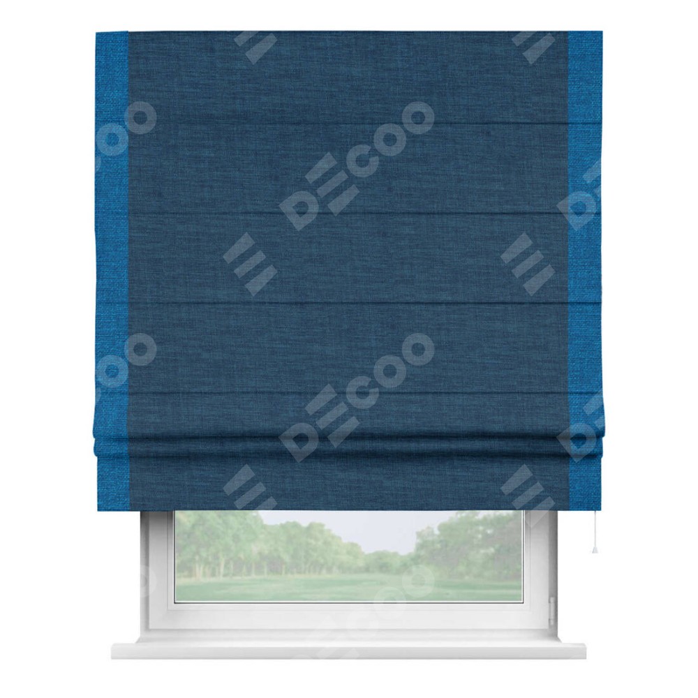 Римская штора «Кортин» для проёма, лён синий, с кантом Стрим Дуо