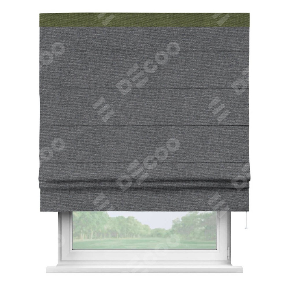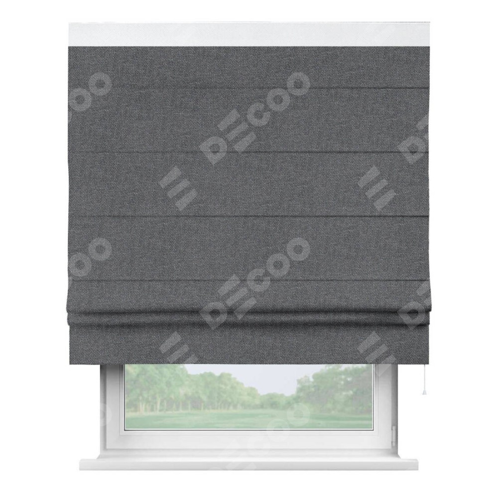 Римская штора «Кортин» для проёма, лён димаут графит с кантом Кинг