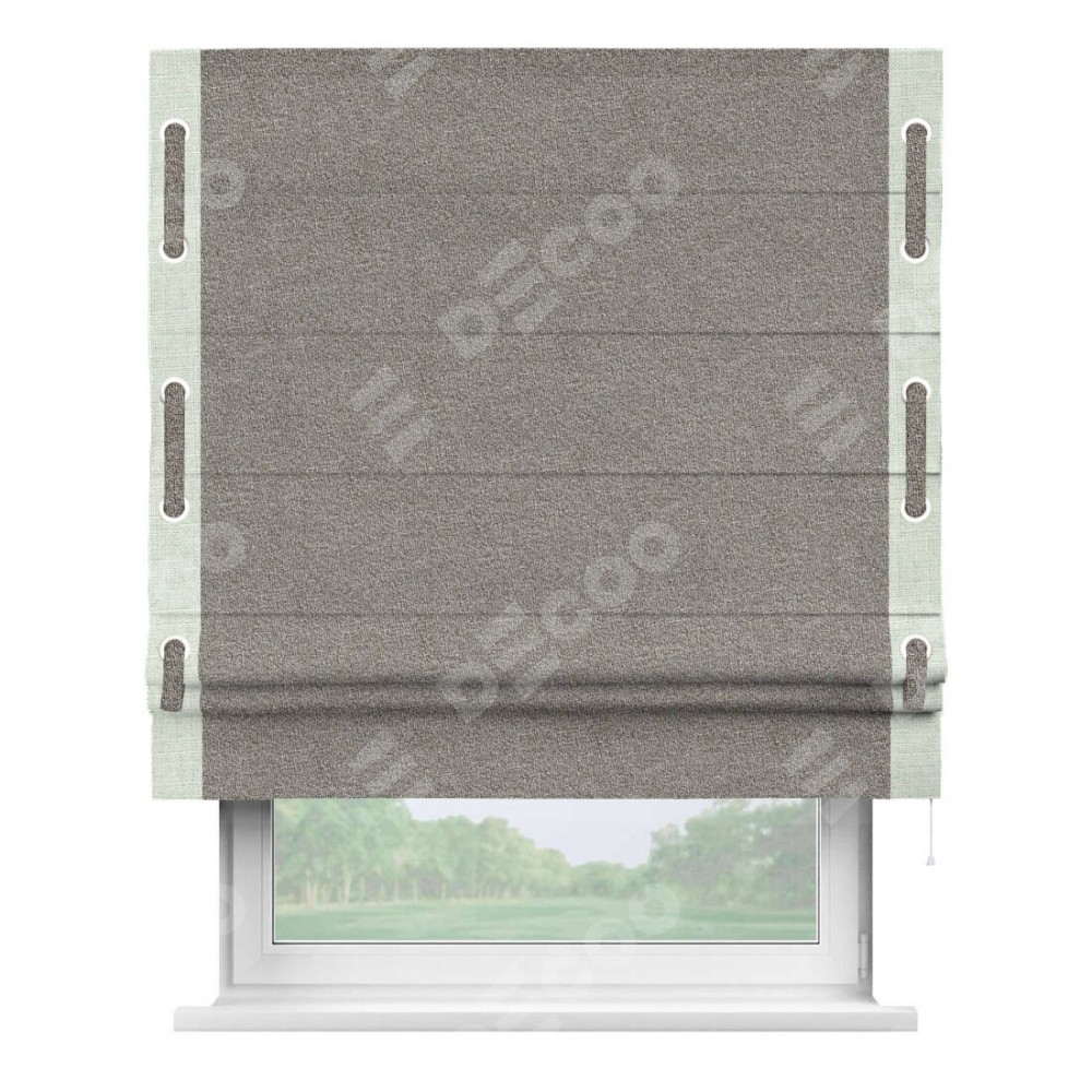 Римская штора «Кортин» для проёма, лён меланж натуральный, с кантом Стрим Дуо (люверсы с пояском)