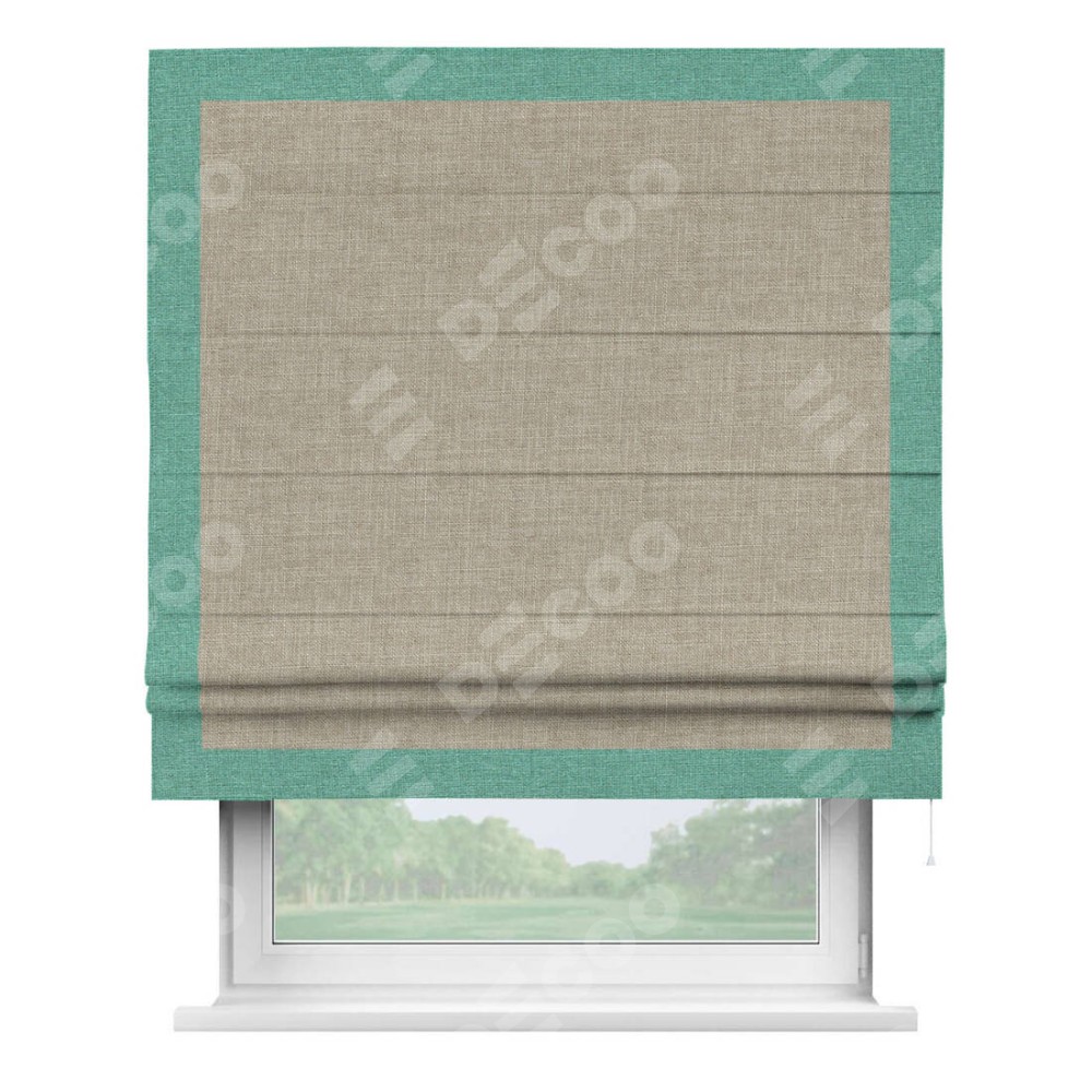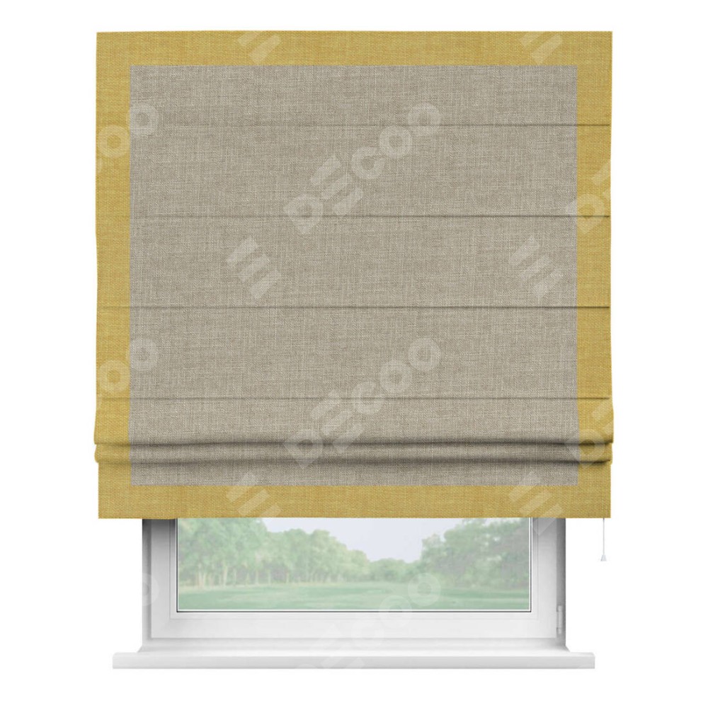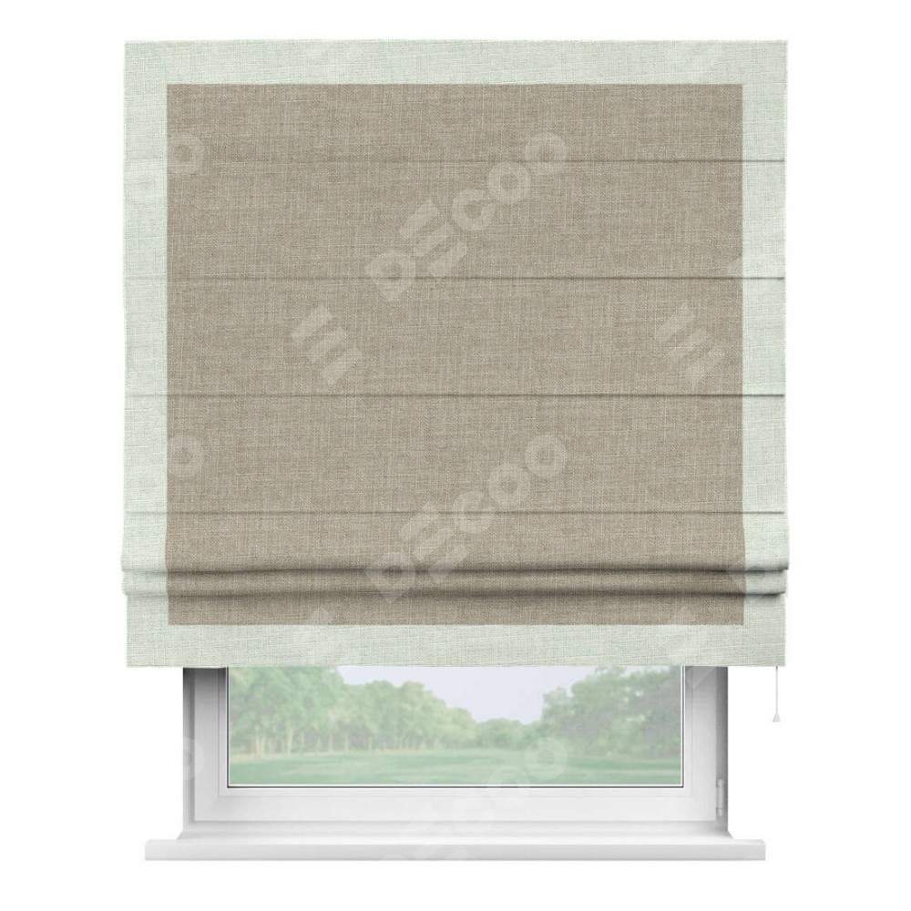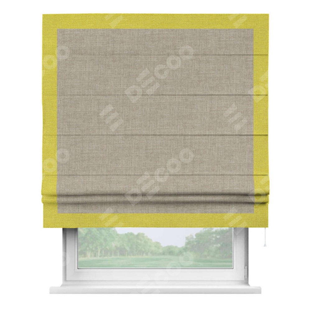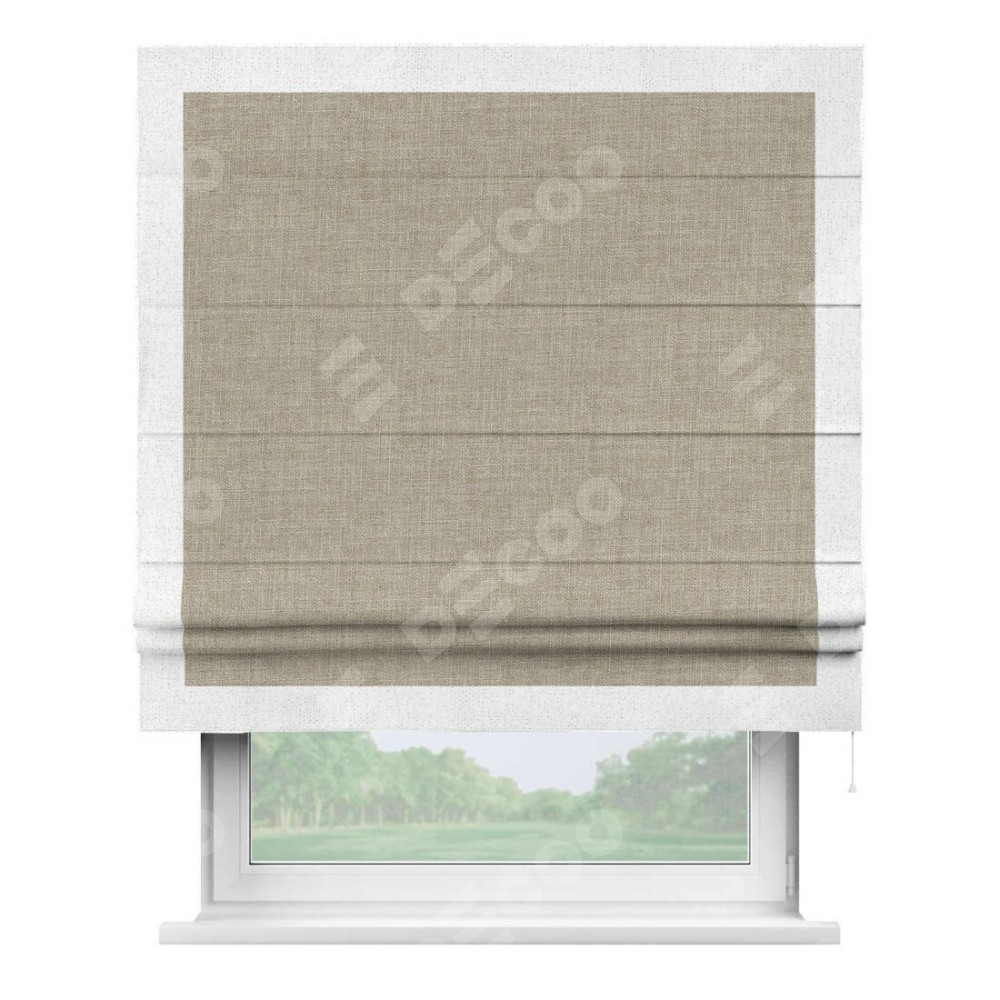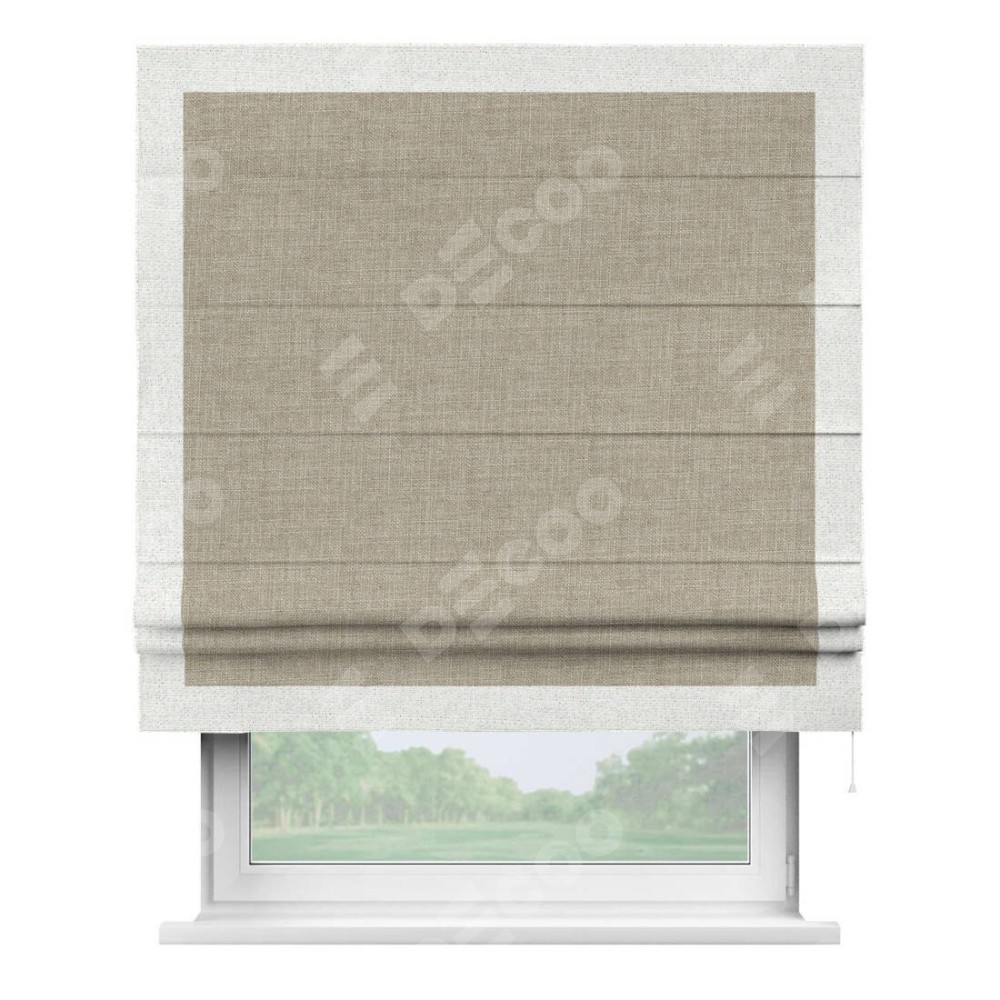 Римская штора «Кортин» для проёма, лён бежевый, с кантом Чесс