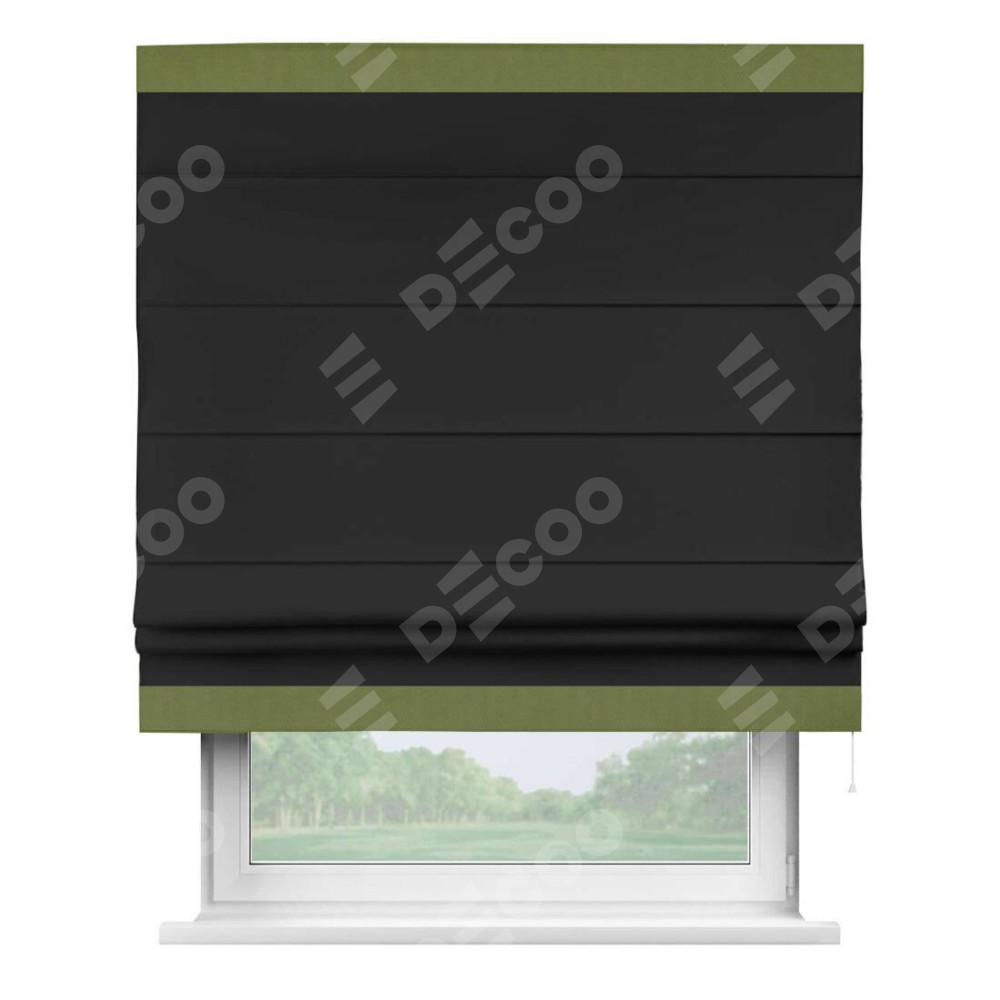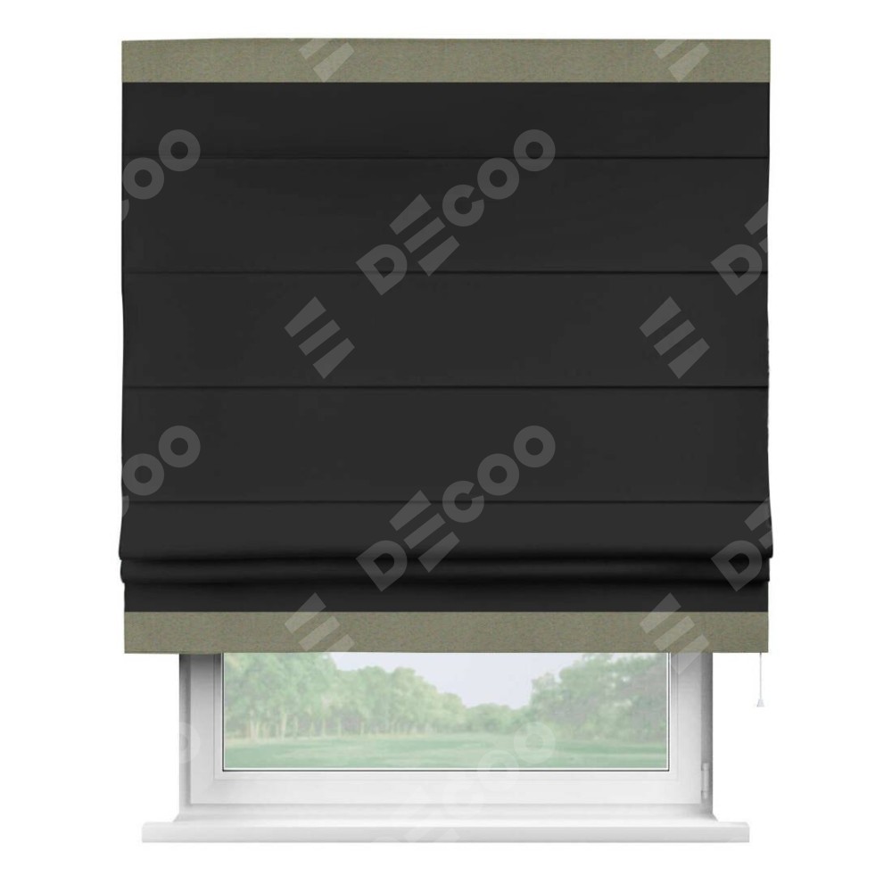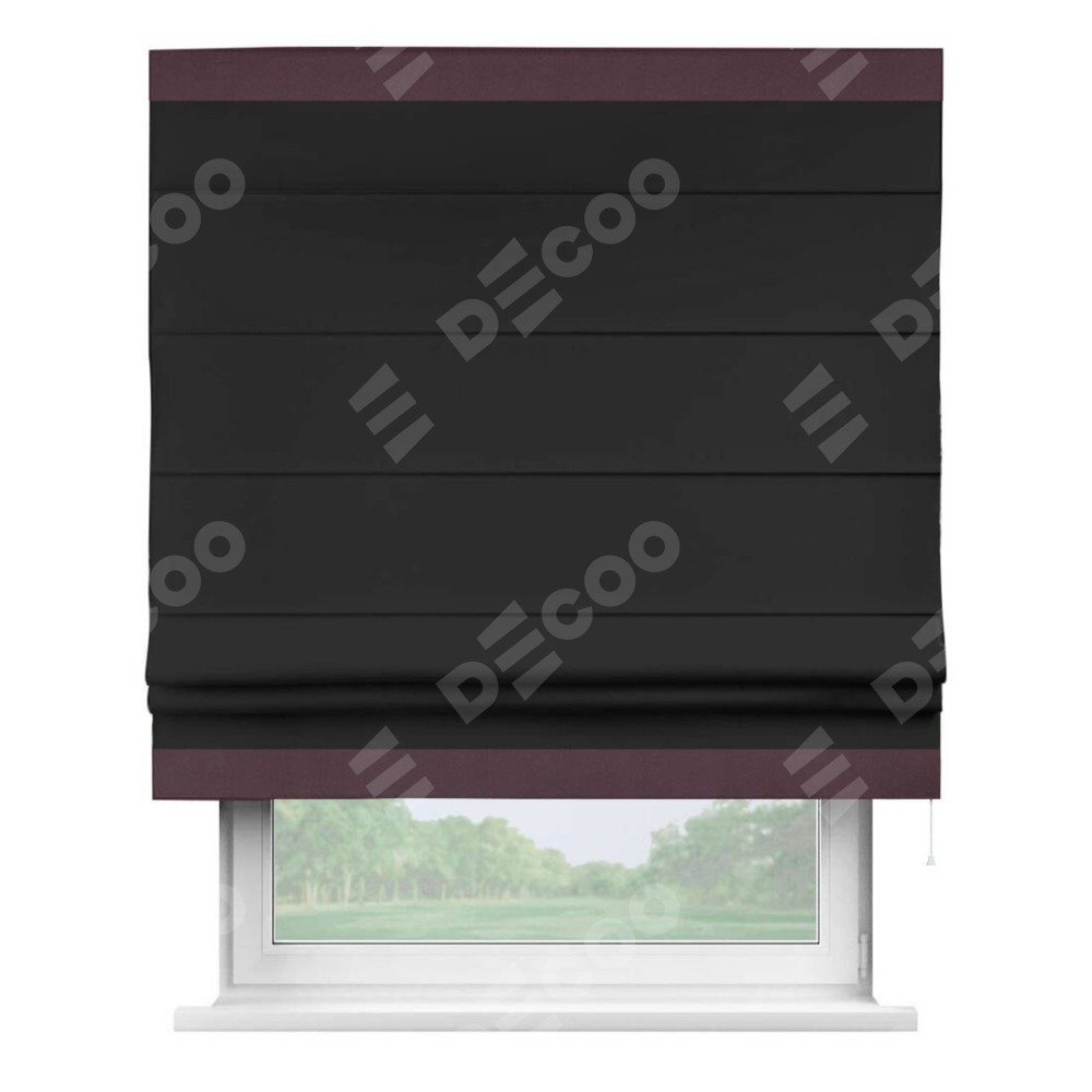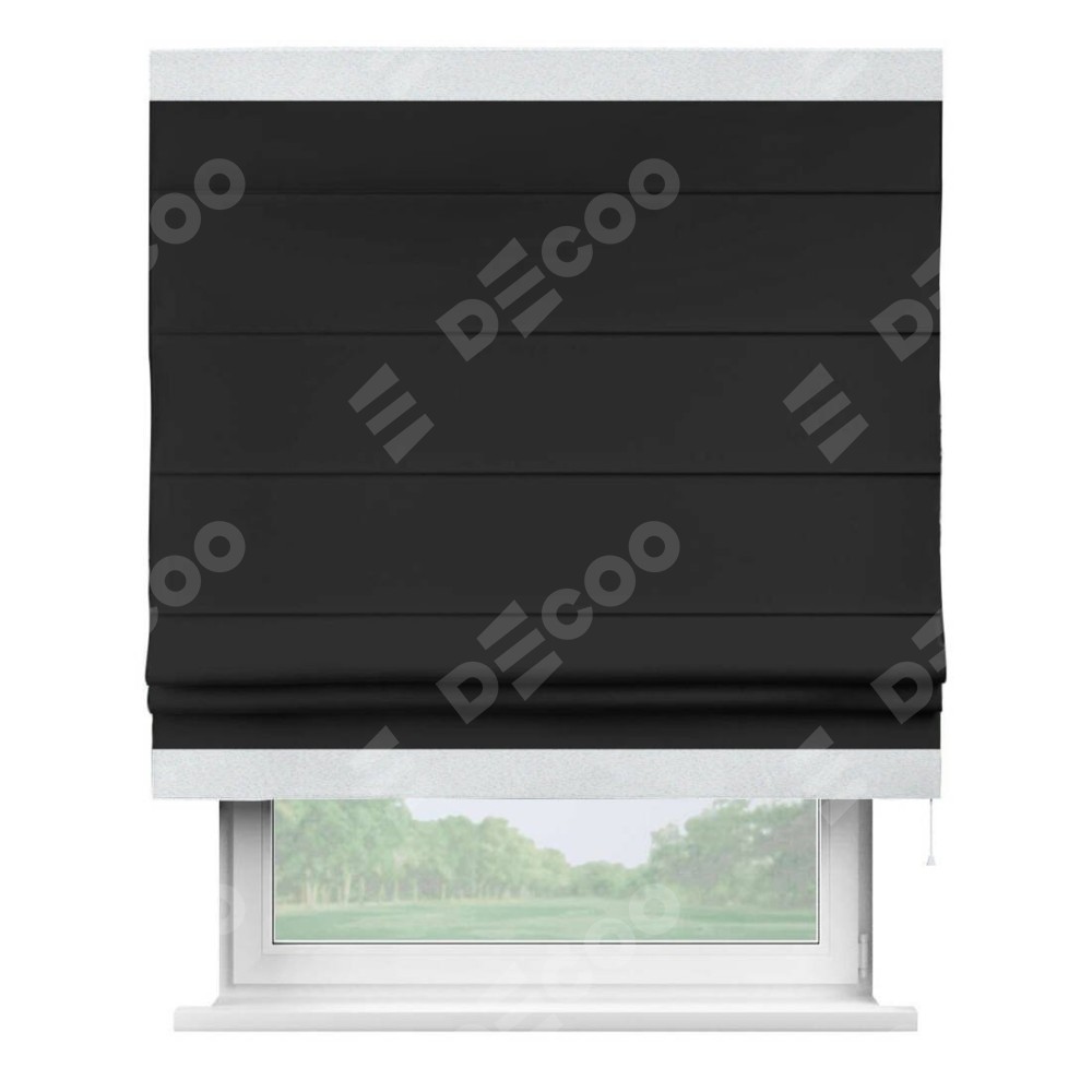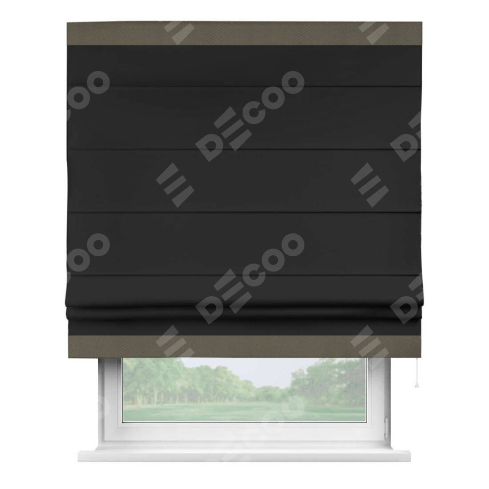 Римская штора «Cortin» для проёма, блэкаут однотонный черный с кантом Горизонт