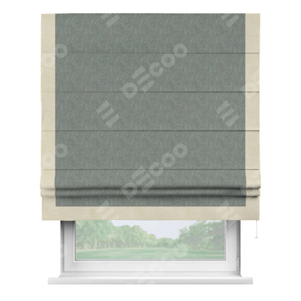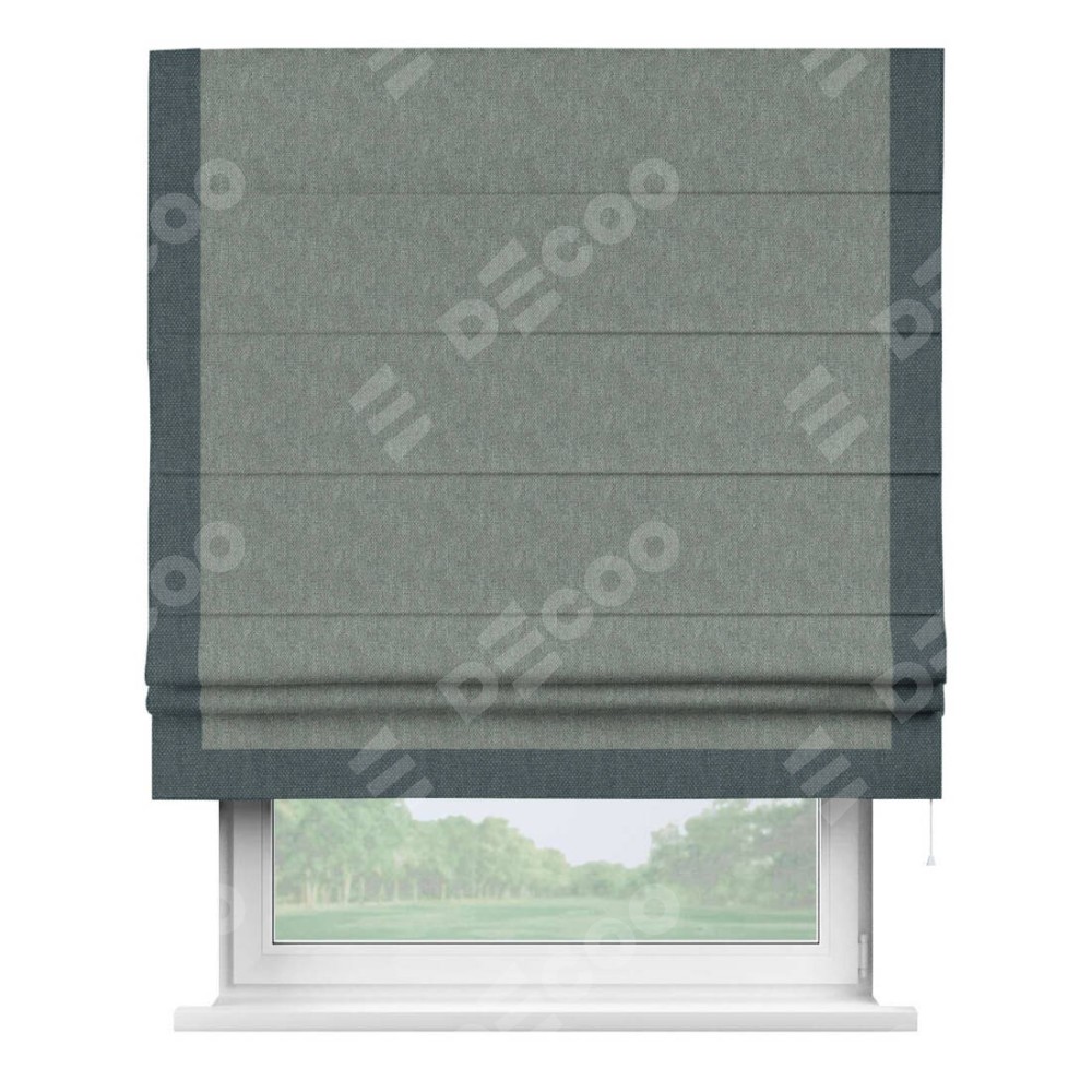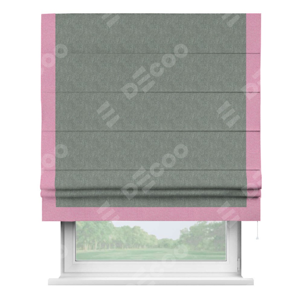 Римская штора производителя «Cortin», используется для проёма, пошита из ткани лён димаут серый, артикул 16240. Отделка шторы кантом «Виктория», ткань для канта используется из льна димаут разной расцветки на выбор. Имеет универсальный механизм и подходит для монтажа: на потолок, на стену и в нишу.