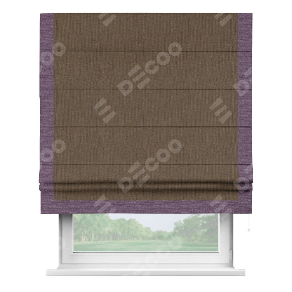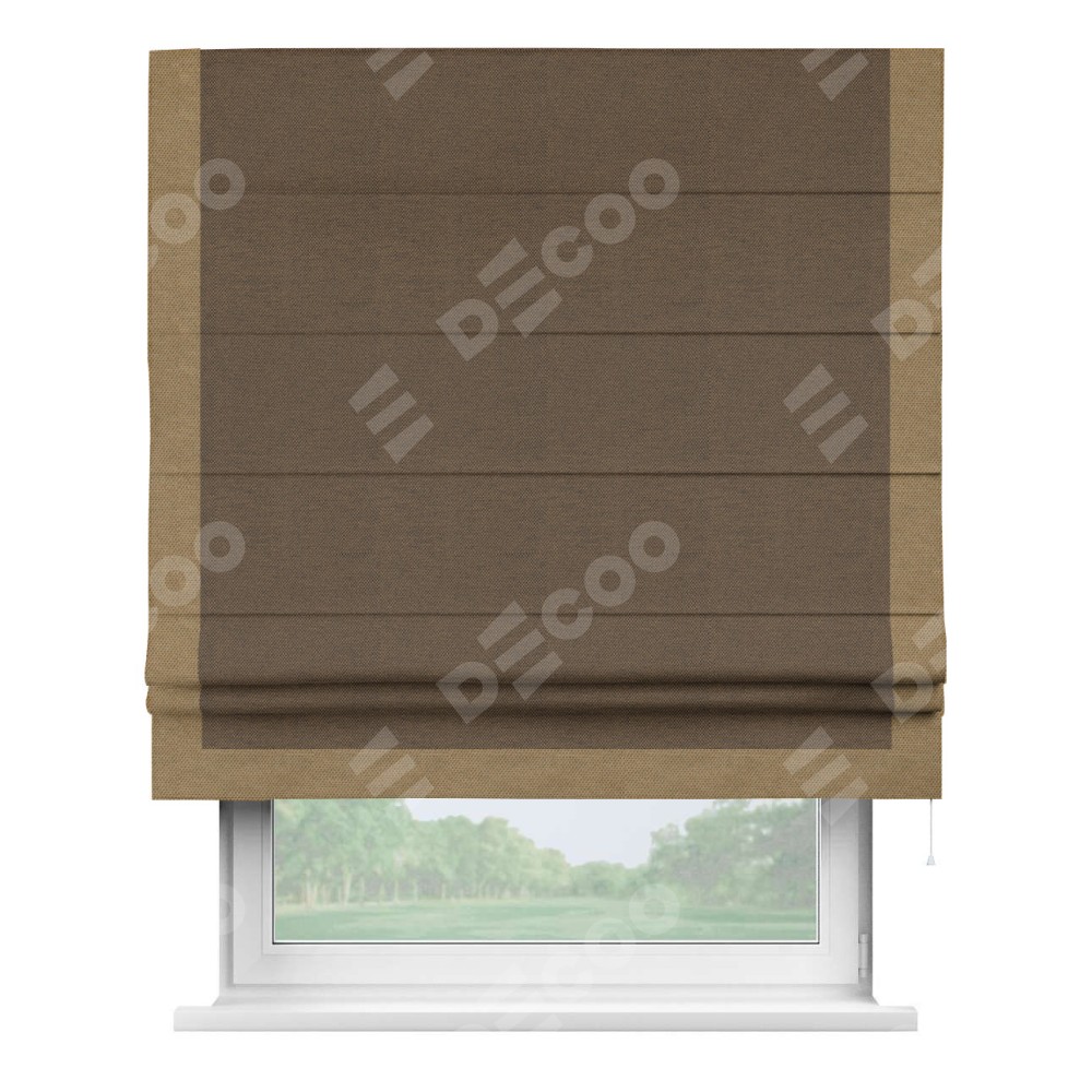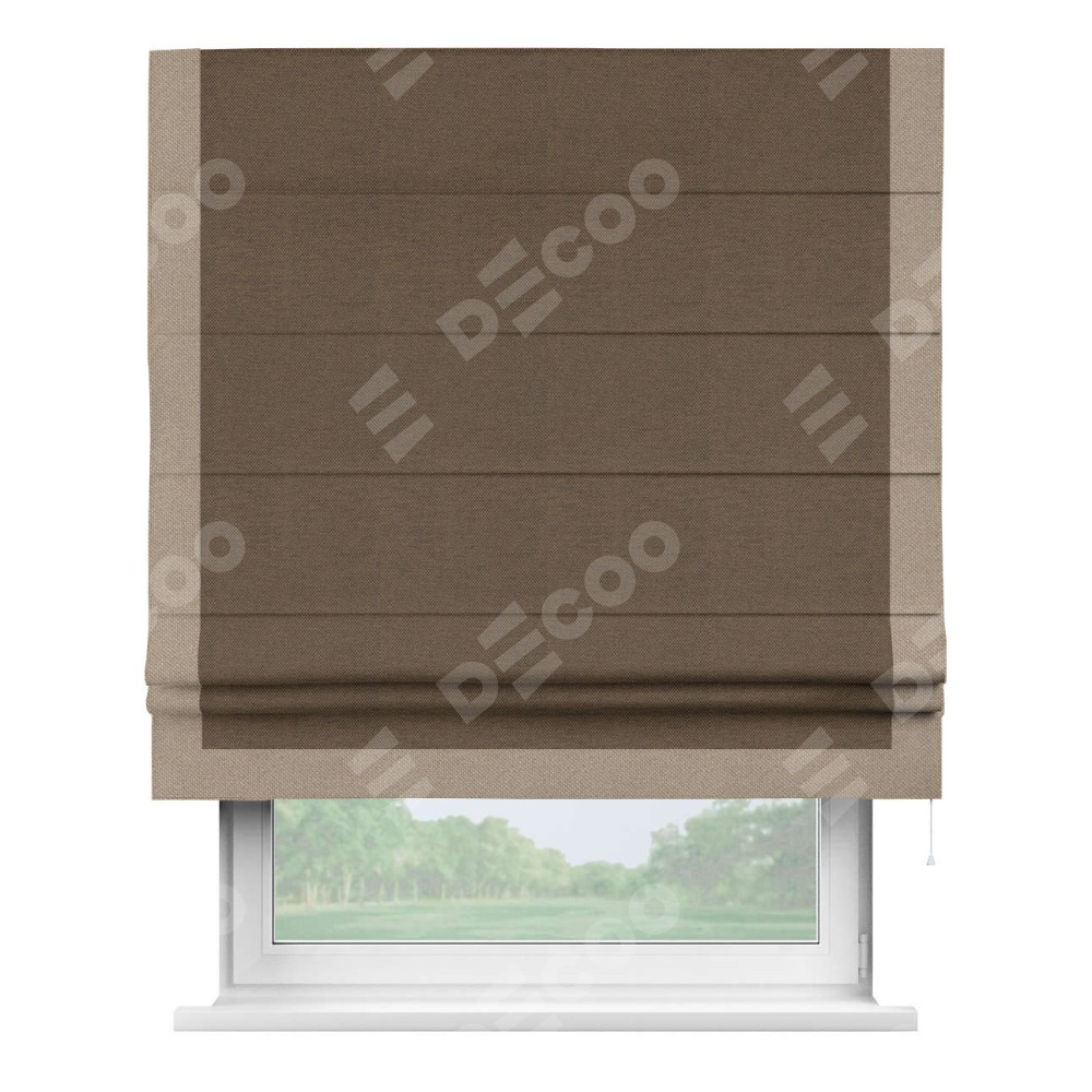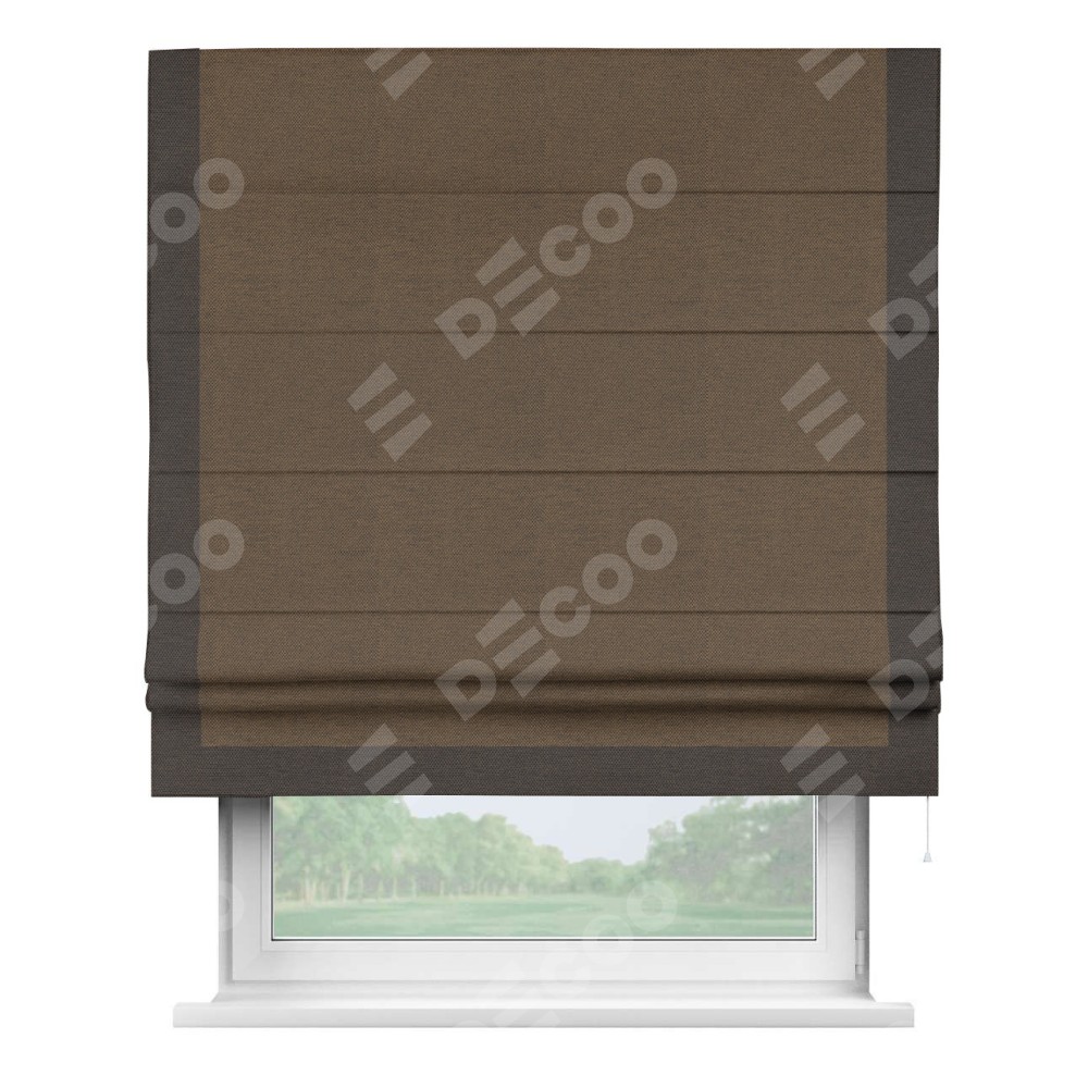 Римская штора «Кортин» с кантом Виктория, для проема, ткань лён димаут, тёмно-коричневый