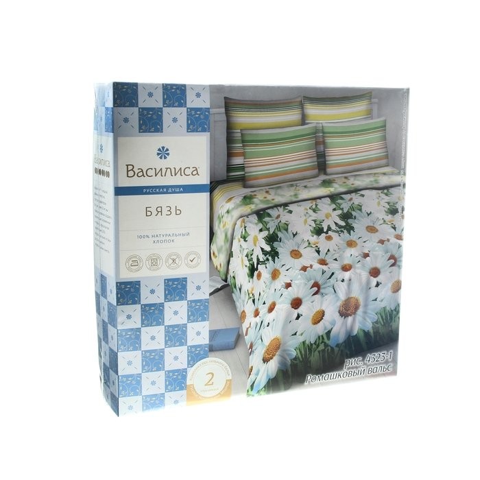 Постельное бельё евро «Василиса» Ромашковый вальс 200×215 см, 200×220 см, 70×70 см — 2 шт.