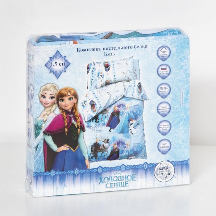 Постельное бельё 1,5 сп «Холодное сердце», размер 143×215 см, 150×214 см, 50×70 см -1 шт., 100% хлопок, бязь 125 г/м2